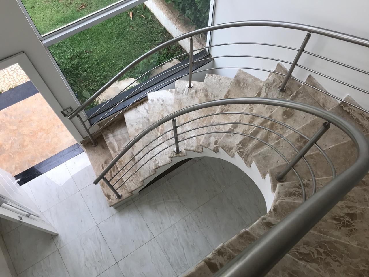 No térreo, a cozinha espaçosa com ilha integra-se à área gourmet, criando um espaço ideal para receber convidados. A lavanderia e o banheiro externo proporcionam maior conveniência para o dia a dia. A sala com dois ambientes oferece conforto e flexibilidade para diferentes momentos de convivência.