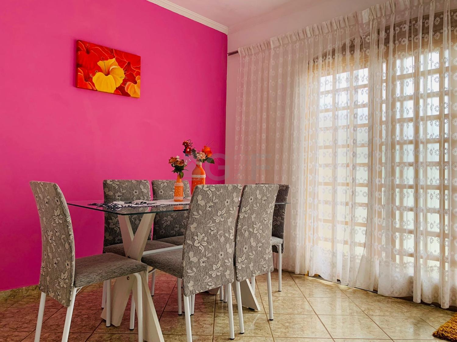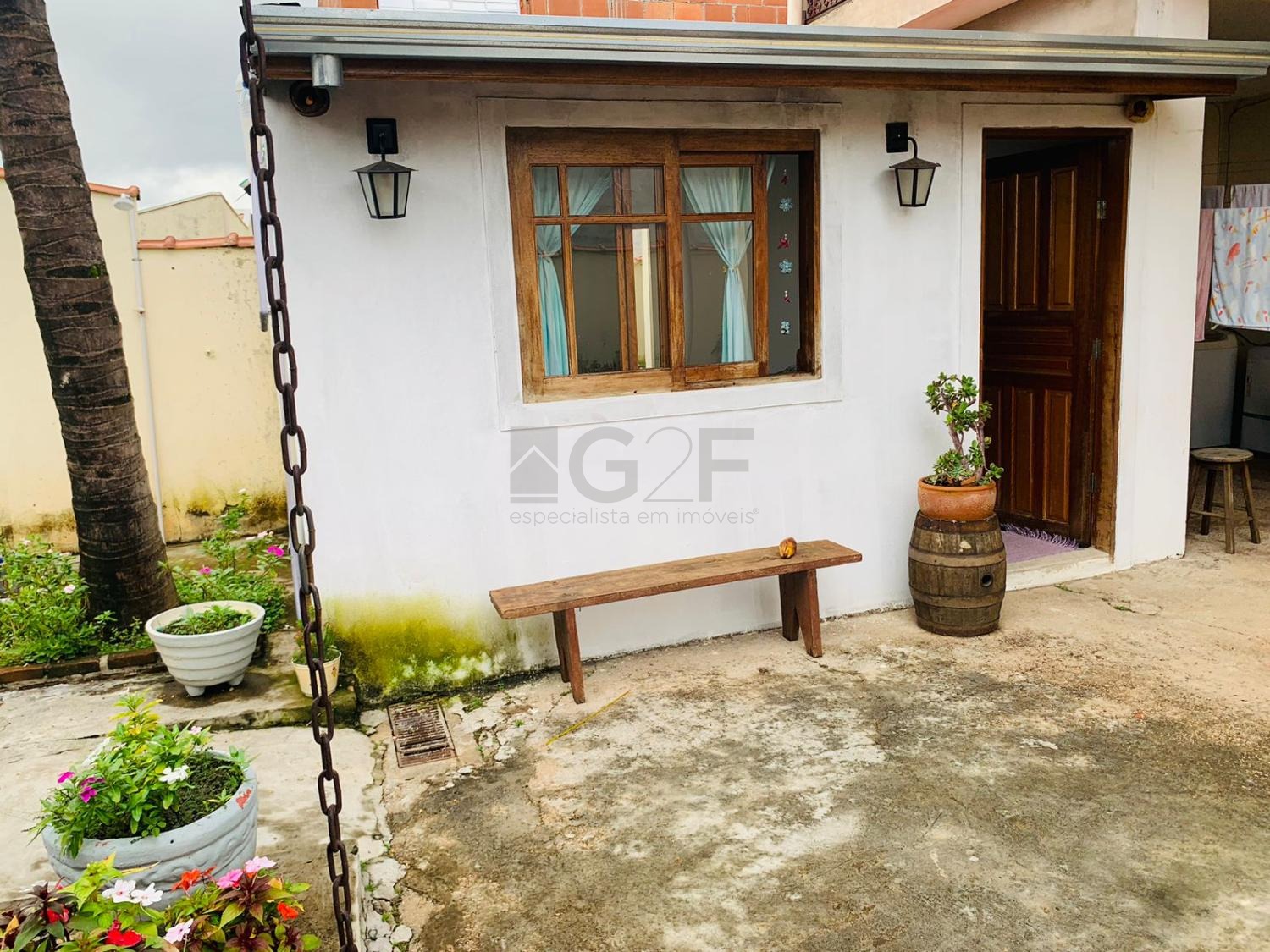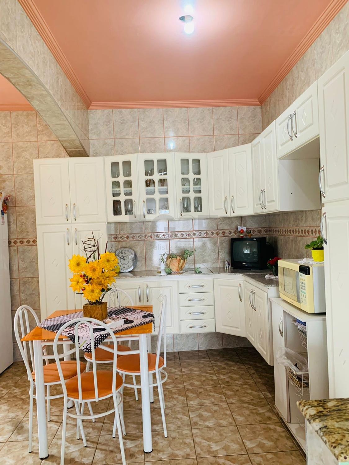 Parte superior, 3 quartos, 1 suítes, 2 salas, cozinha com armários, com áreas de churrasco, garagem para 2 carros cobertas.