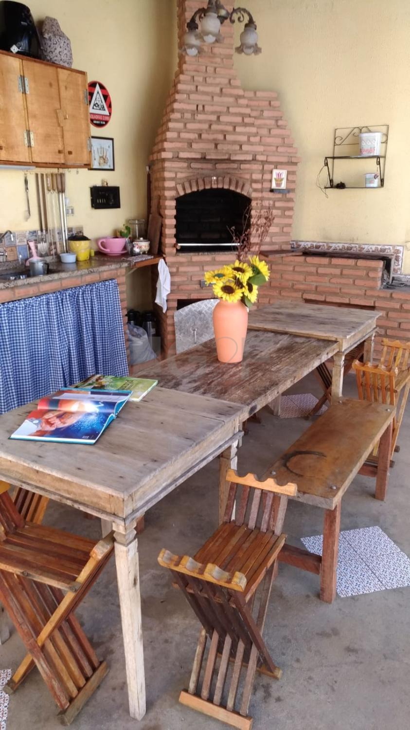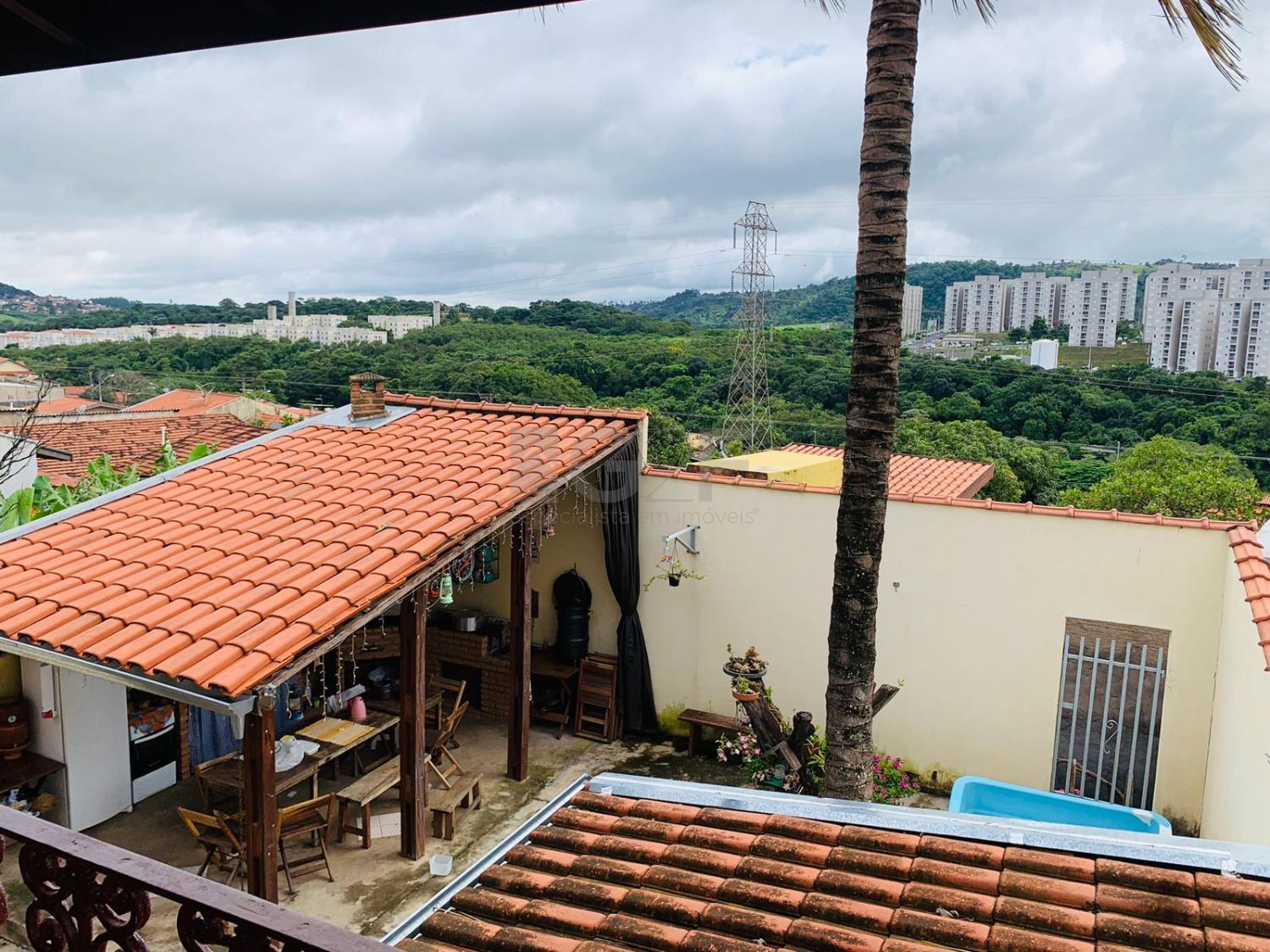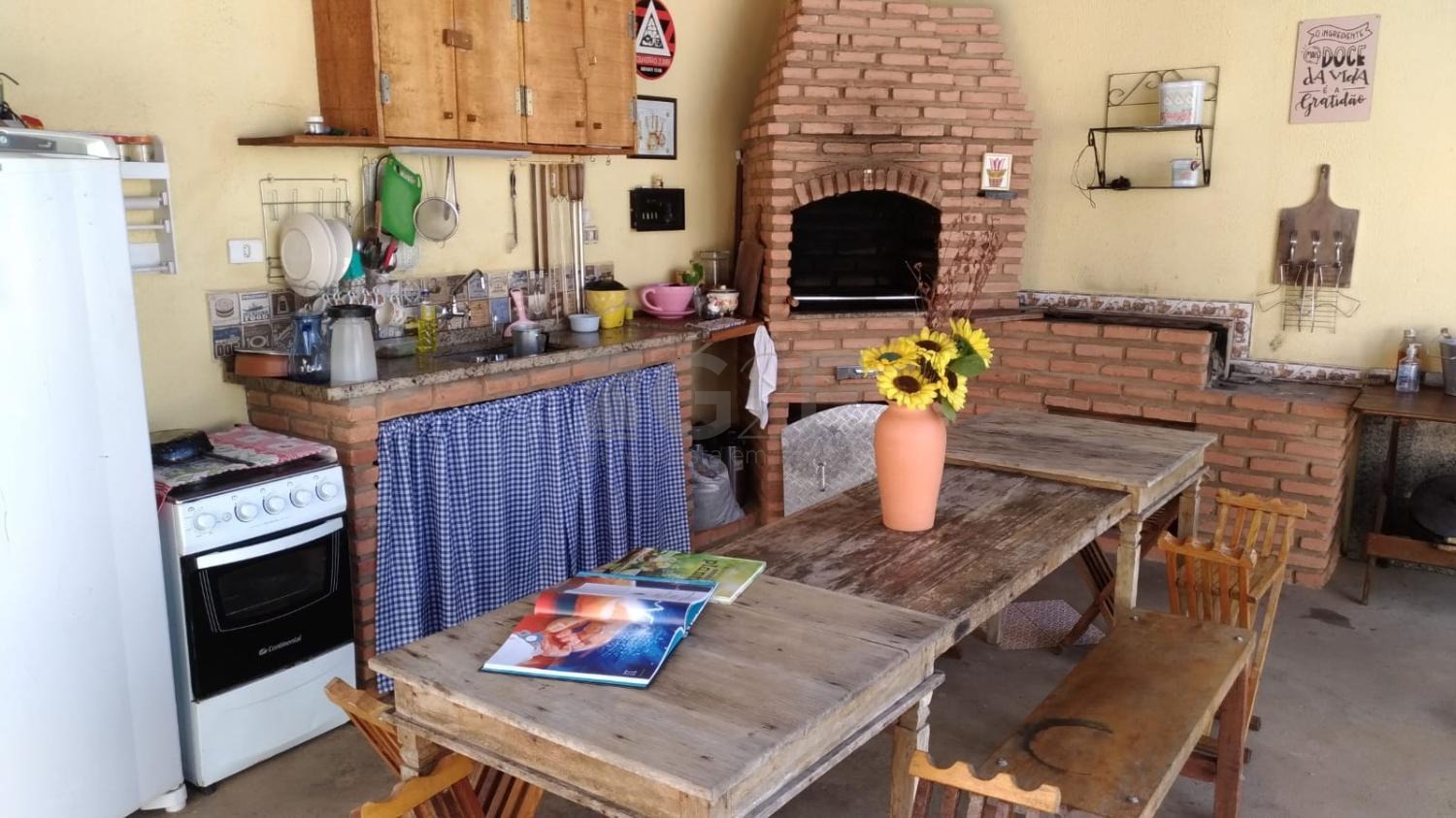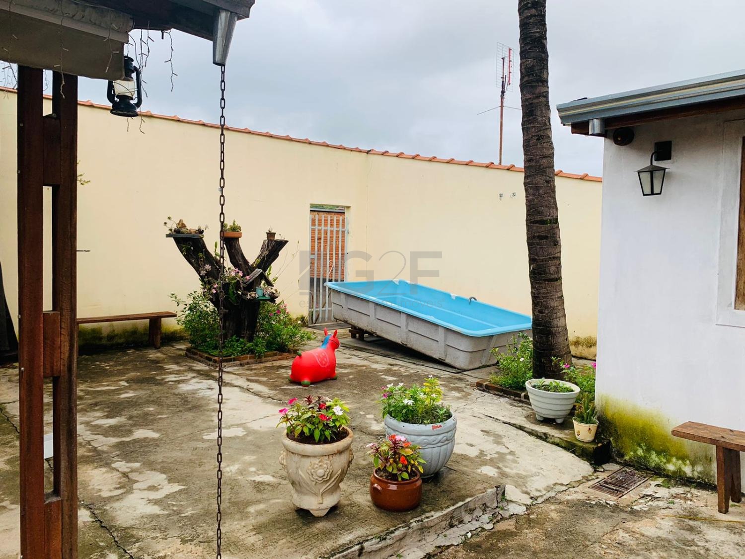 Parte de baixo, 3 quartos, 1 suíte, cozinha tipo americana, banheiro, quintal com 120m², e área gourmet com churrasqueira.