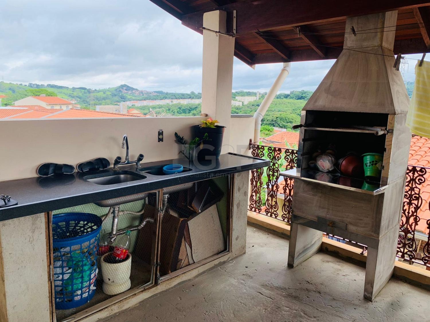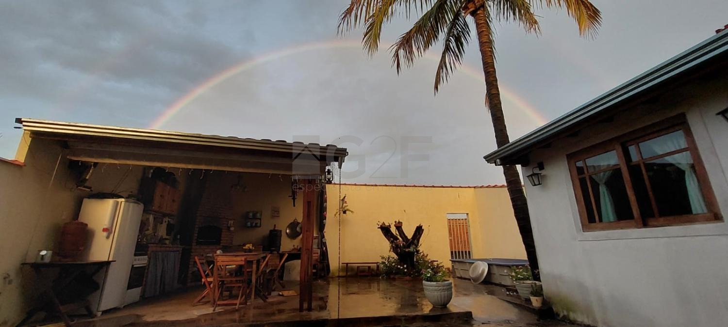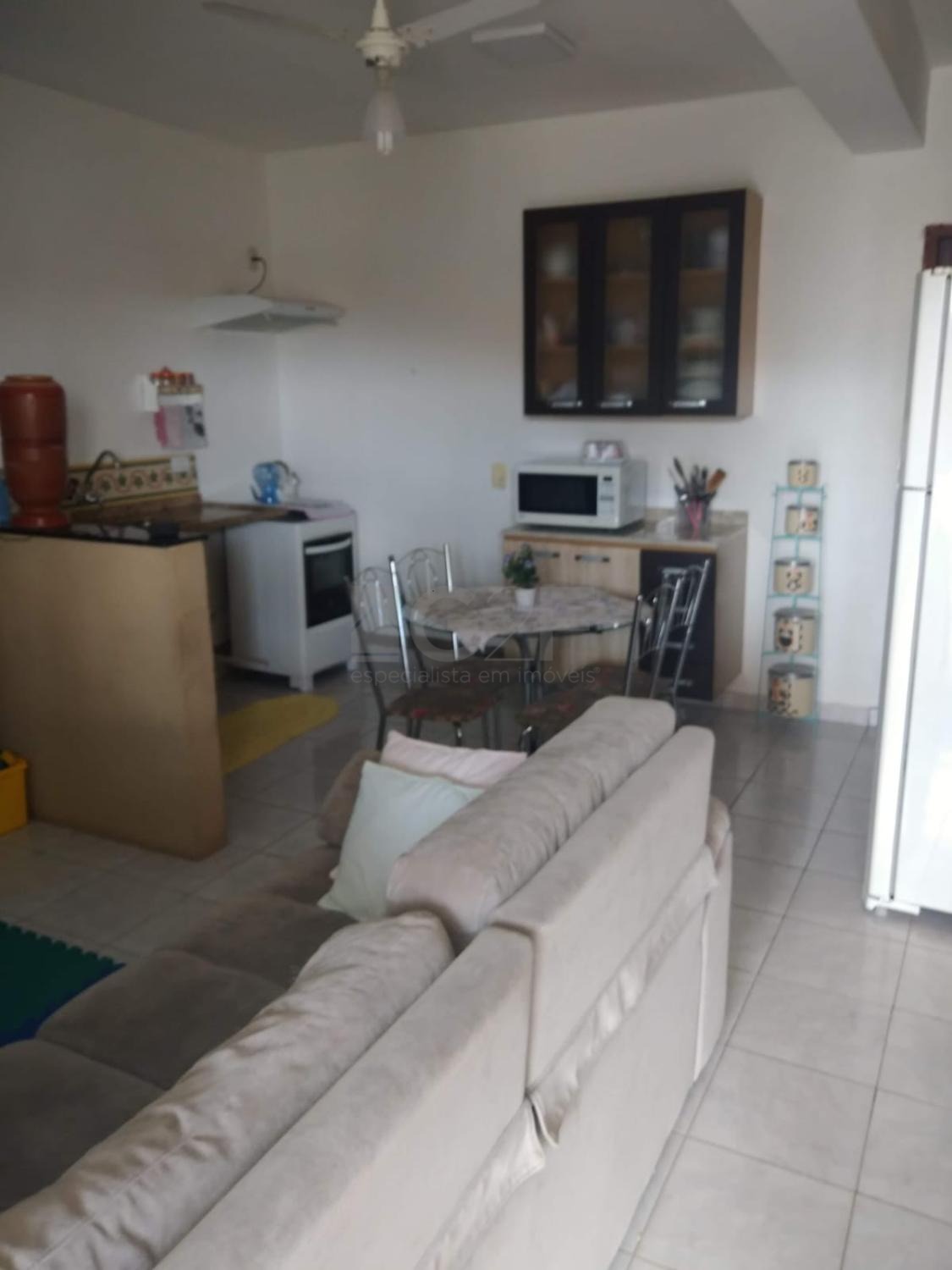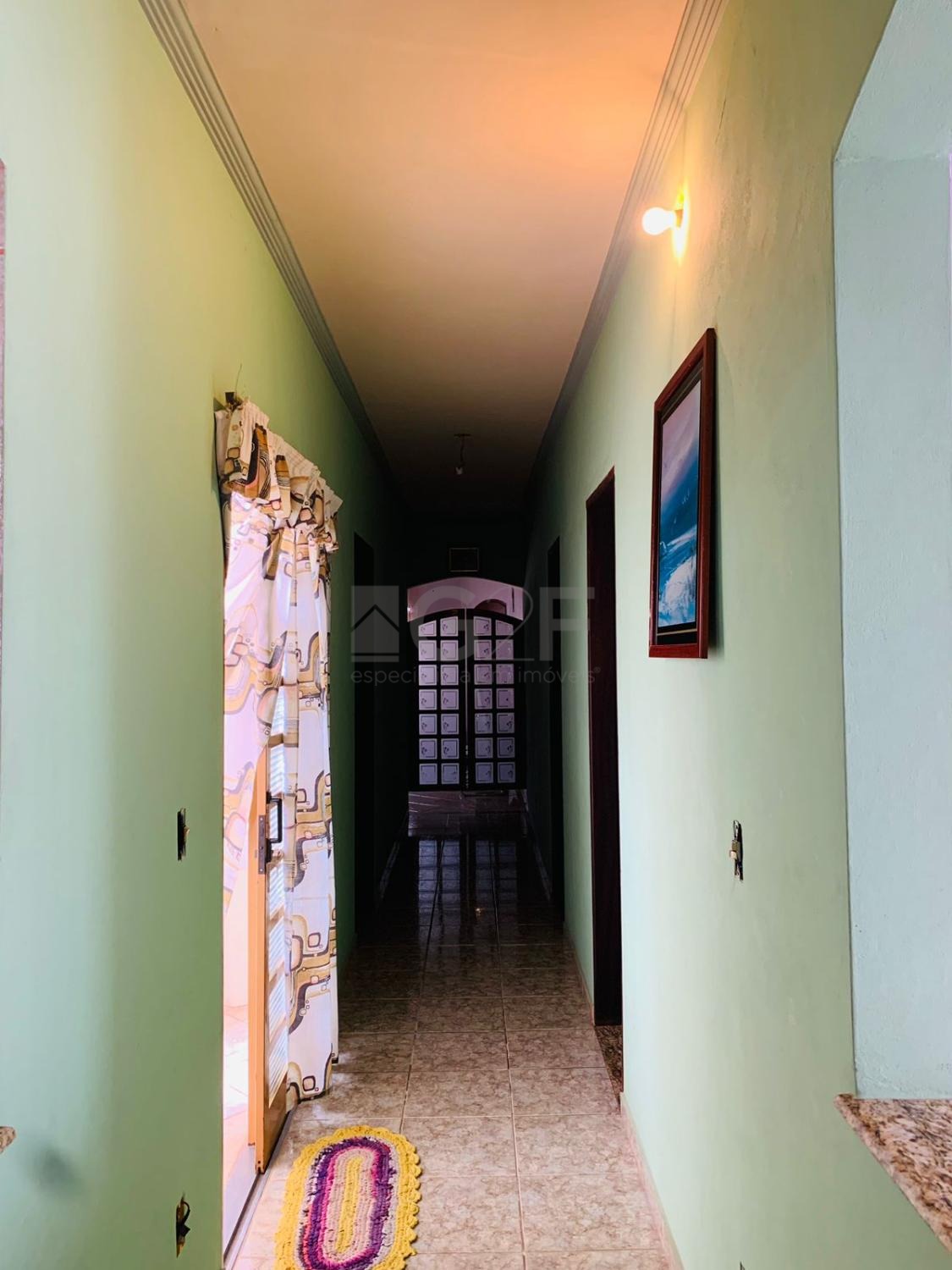 Parte de baixo, 3 quartos, 1 suíte, cozinha tipo americana, banheiro, quintal com 120m², e área gourmet com churrasqueira.