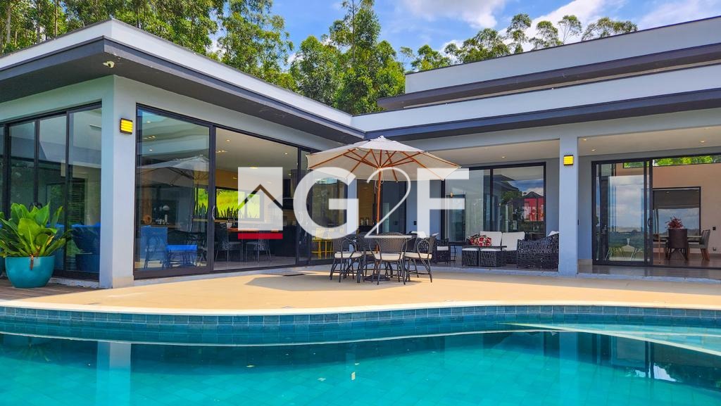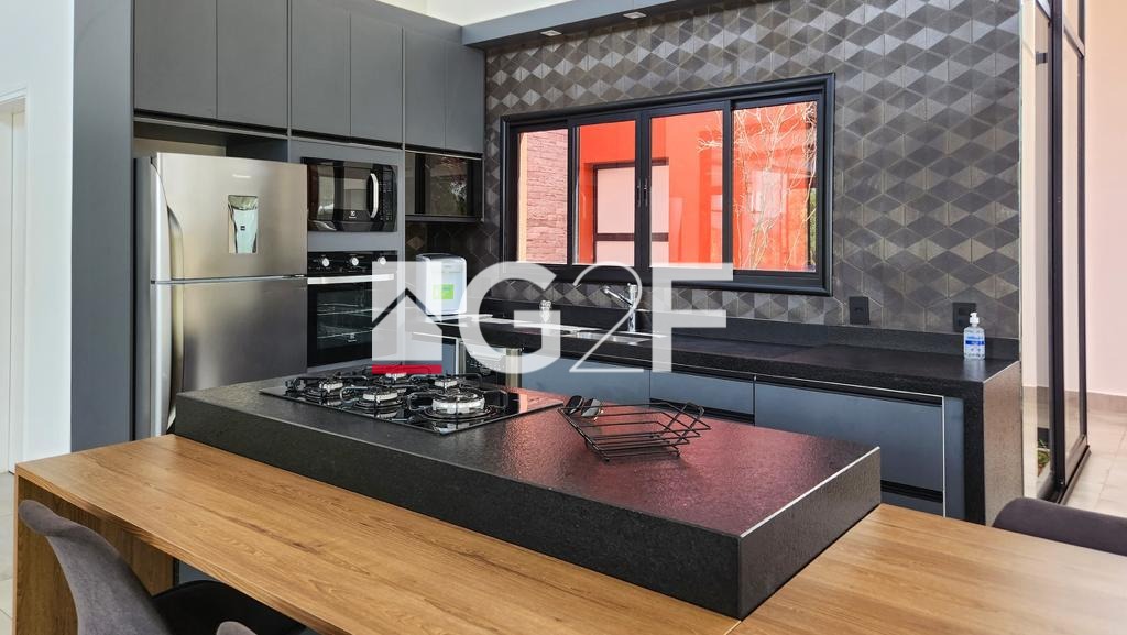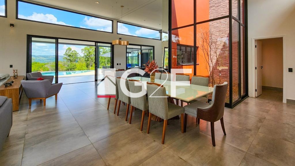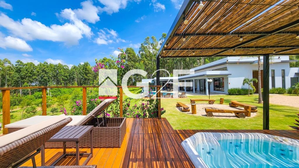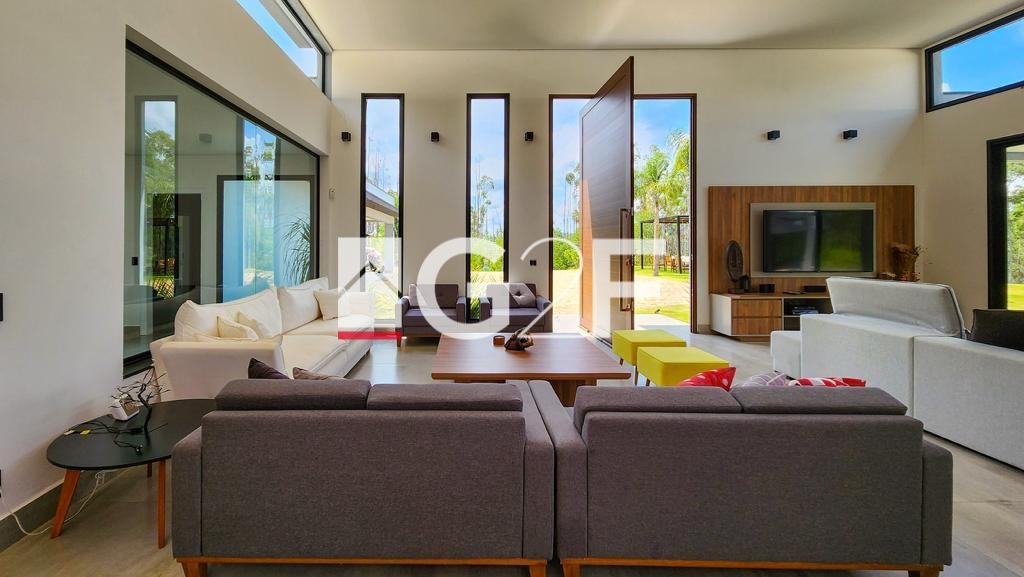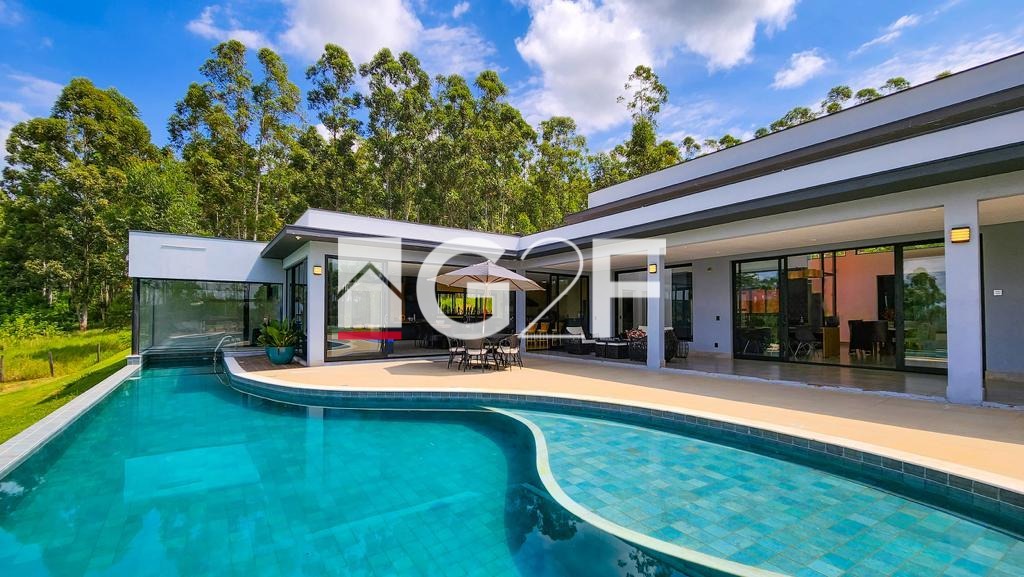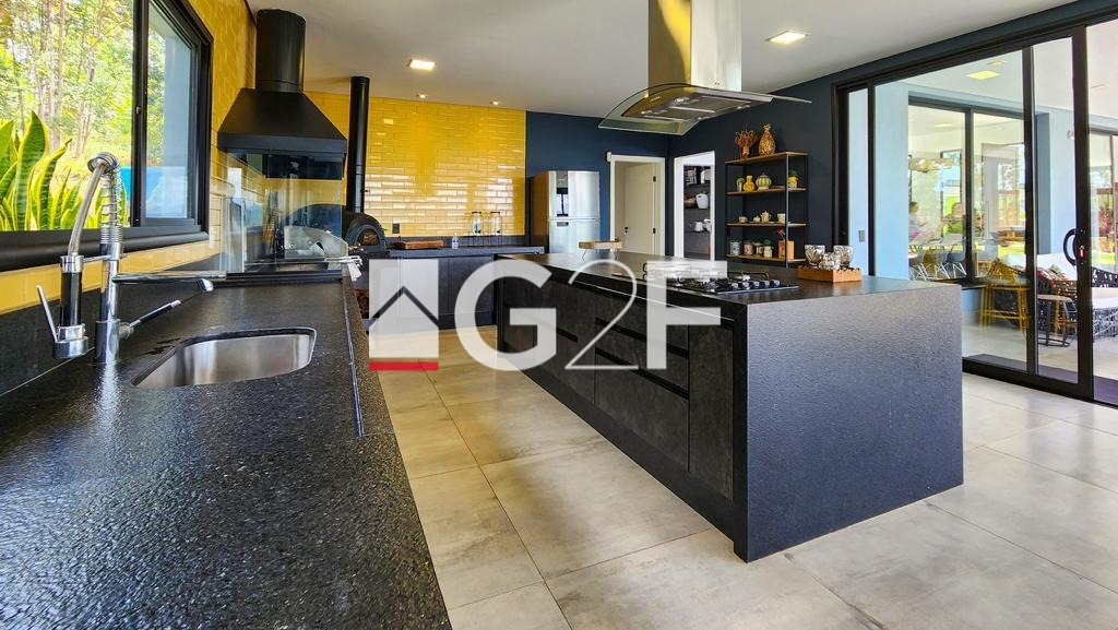 Casa de alto nível à venda em local privilegiado no condomínio Fazenda Iracema. Possui 5 suítes semelhantes com closet planejado e um total de 8 banheiros. Dispõe de condicionadores de ar em todos os quartos. Amplo living para, no mínimo 3 ambientes, como sala de estar, de jantar e de TV. A cozinha é planejada e toda equipada com geladeira, cooktop, forno elétrico e microondas. Espaço gourmet plenamente equipado com balcão central, cooktop, coifa de ilha churrasqueira e forno a lenha. Os ambientes são integrados o que permite plena interação interior-exterior, sem a perda da segurança. Possui despensa e área de serviço funcional. Os colaboradores possuem área específica de permanência nos intervalos, sem interferência na rotina da casa. A parte externa conta com piscina de alvenaria aquecida e com iluminação especial , além de ofurô com hidromassagem aquecido. Dispõe ainda de quadra de Beach Tennis, reversível para Volei de Areia, playground e mirante. Equipada com sistema de energia a base de placas fotovoltaicas, sistema de energia com placas solares para aquecimento de toda casa. Dispõe de sistema para segurança com câmeras e sensores e iluminação com lâmpadas de LED. Possui garagem coberta para 4 carros. Trata-se de um imóvel que atende em alto nível quem nele deseja morar e, ao mesmo tempo, é de significativa rentabilidade para quem nele deseja investir. Conforto em alto nível, segurança e tranquilidade esperam por você. Não perca tempo, venha conhecer!