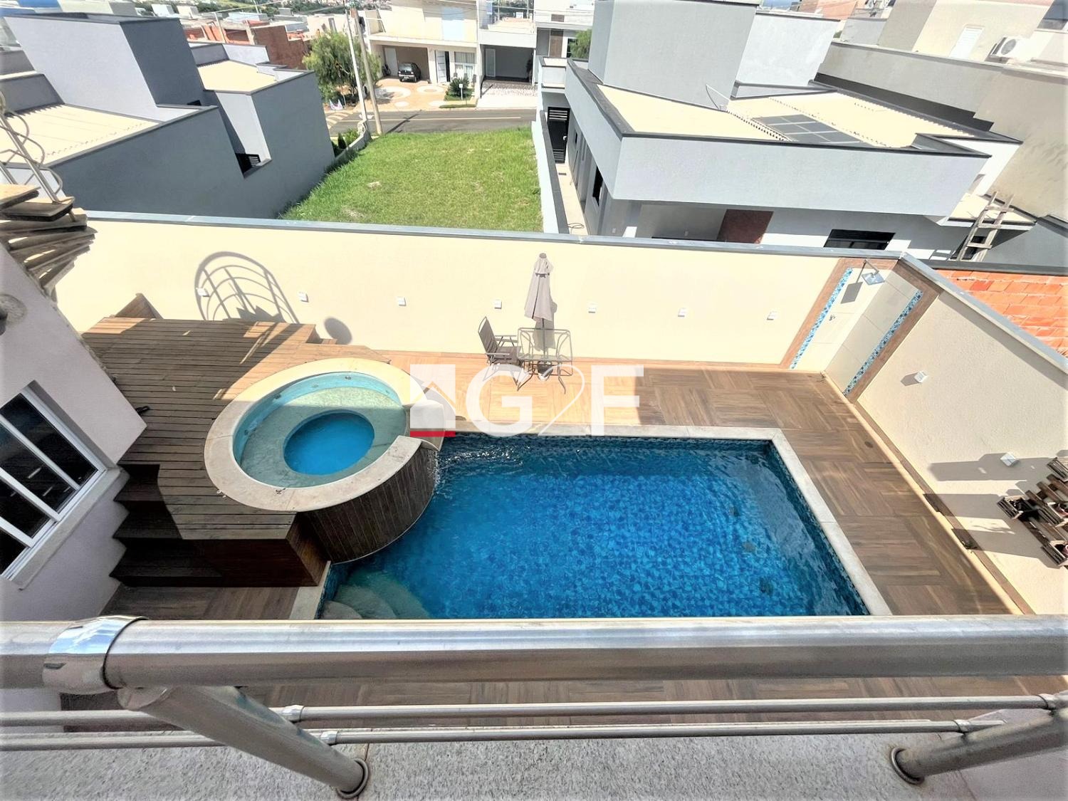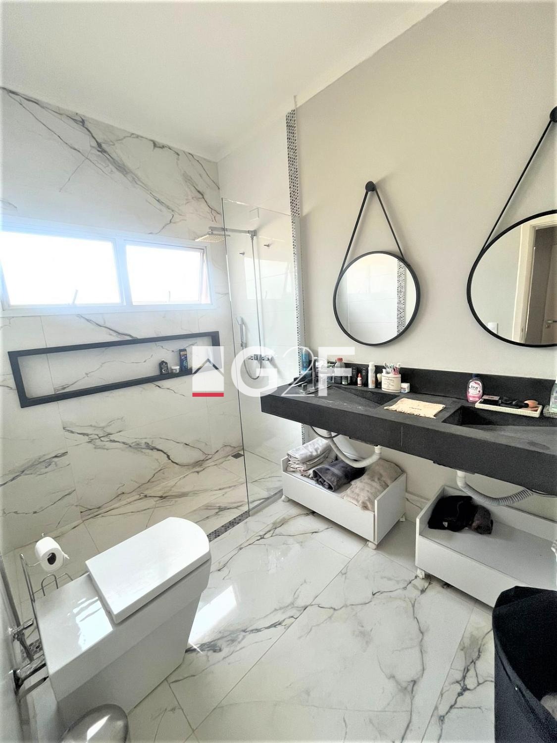Piso inferior com escritório (reversível), lavabo, ampla área gourmet com churrasqueira e ilha em mármore, jardim de inverno lateral, ótima área de lazer com piscina com ofurô e vaga para 4 veículos.