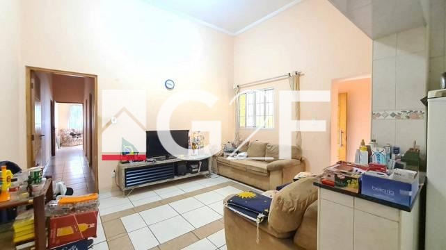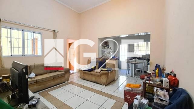 Casa com 2 quartos, banheiro social, sala, cozinha, área de serviço.