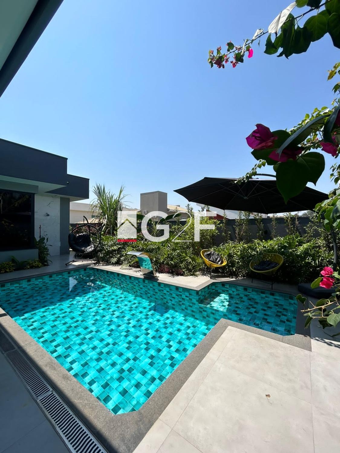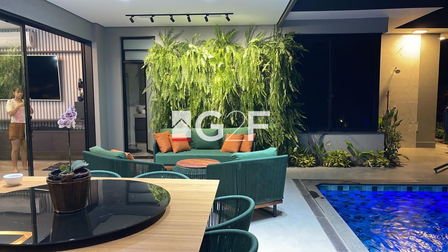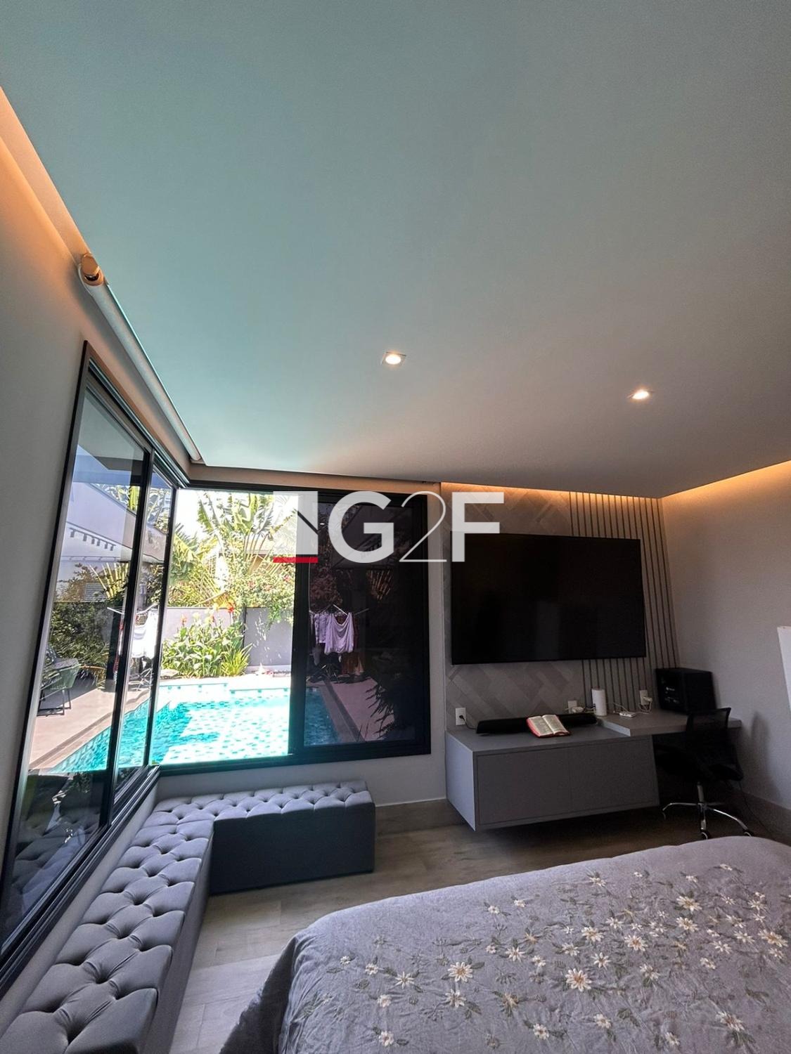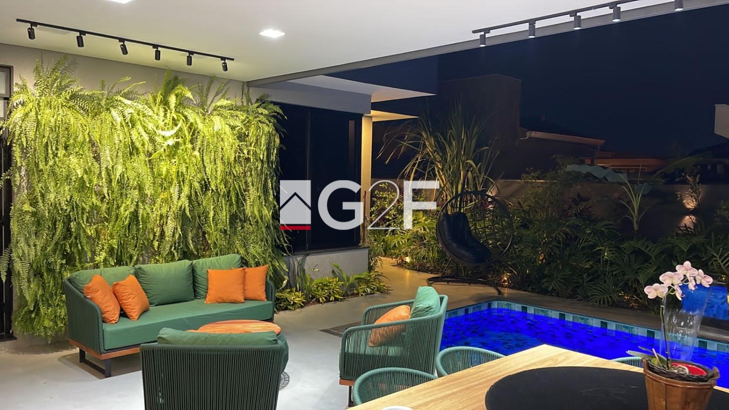 Na área gourmet, possui churrasqueira integrada com forno de pizza, ilha com cooktop. Piscina com hidromassagem e um quarto com banheiro.