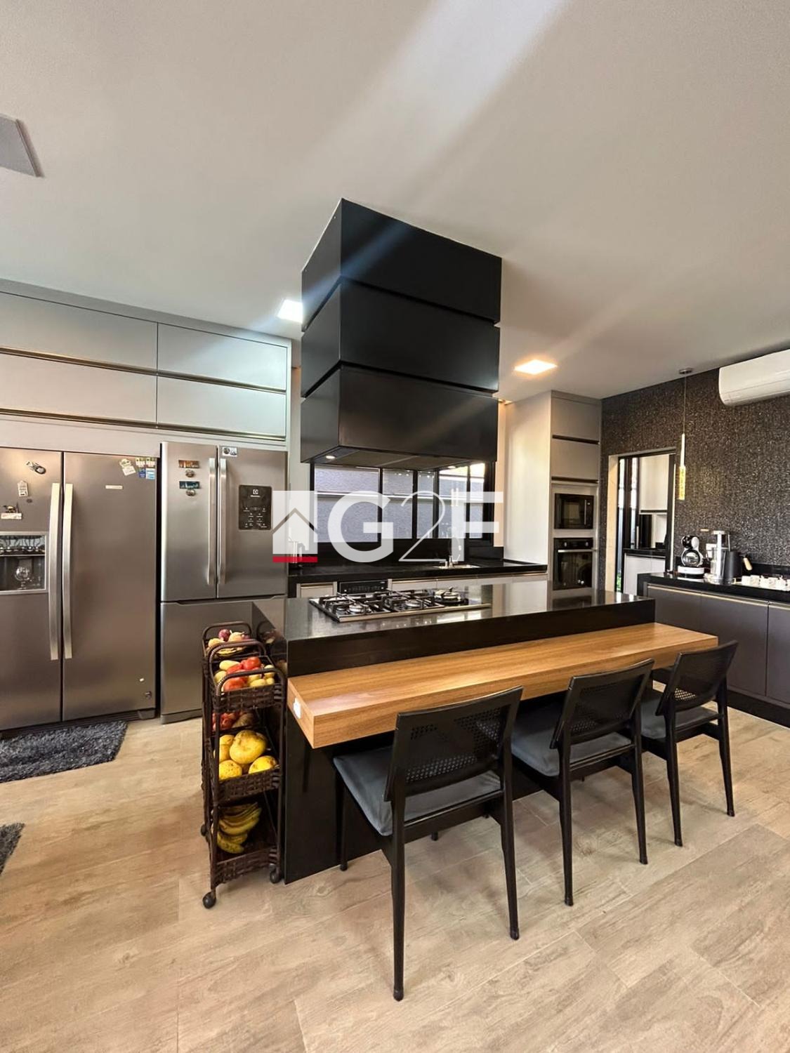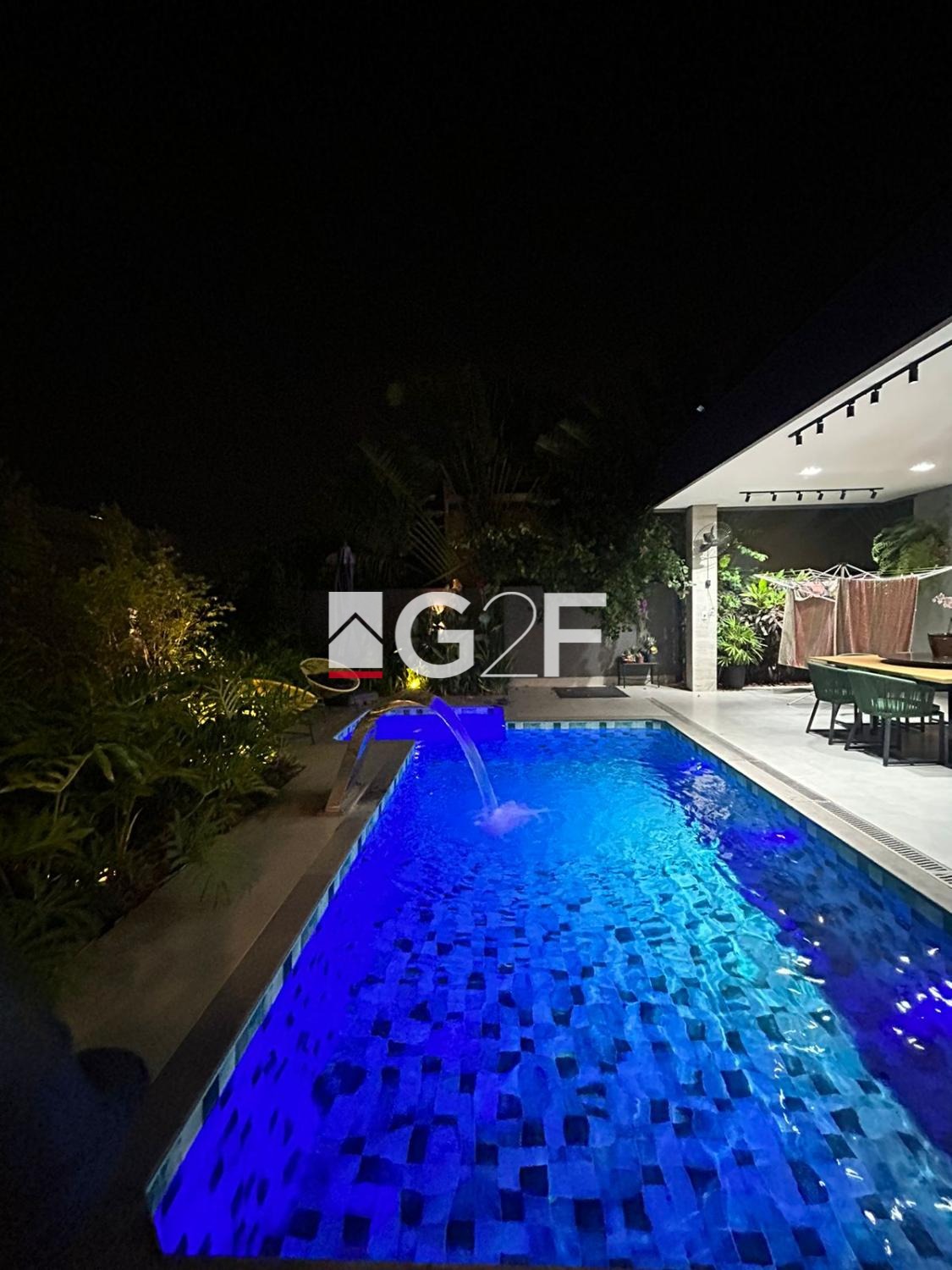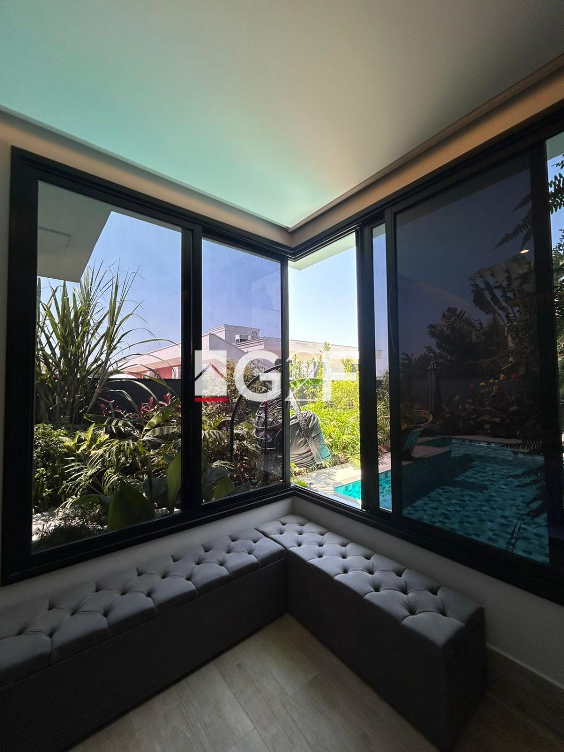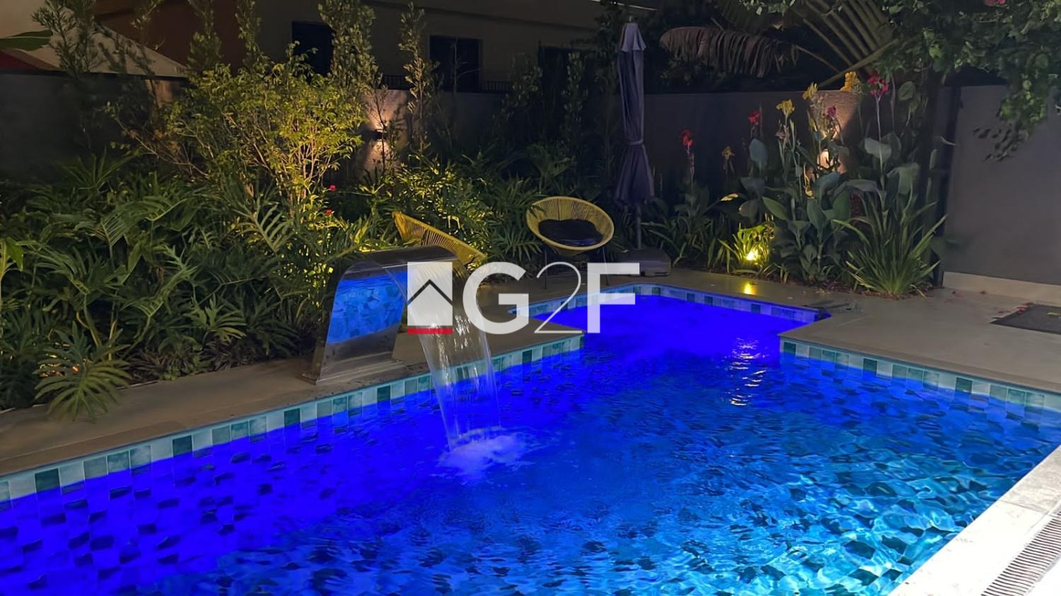 Na área gourmet, possui churrasqueira integrada com forno de pizza, ilha com cooktop. Piscina com hidromassagem e um quarto com banheiro.