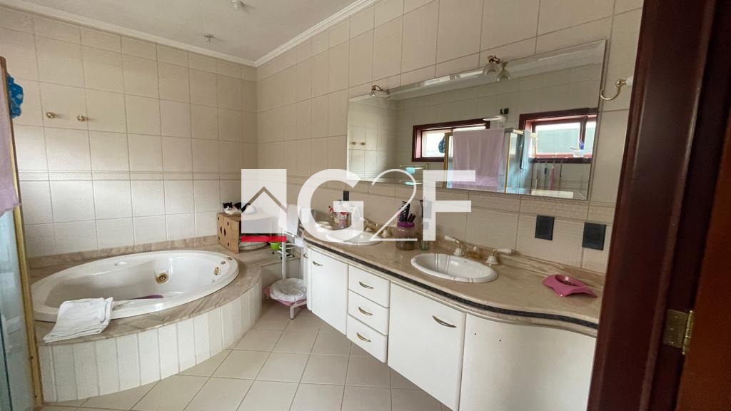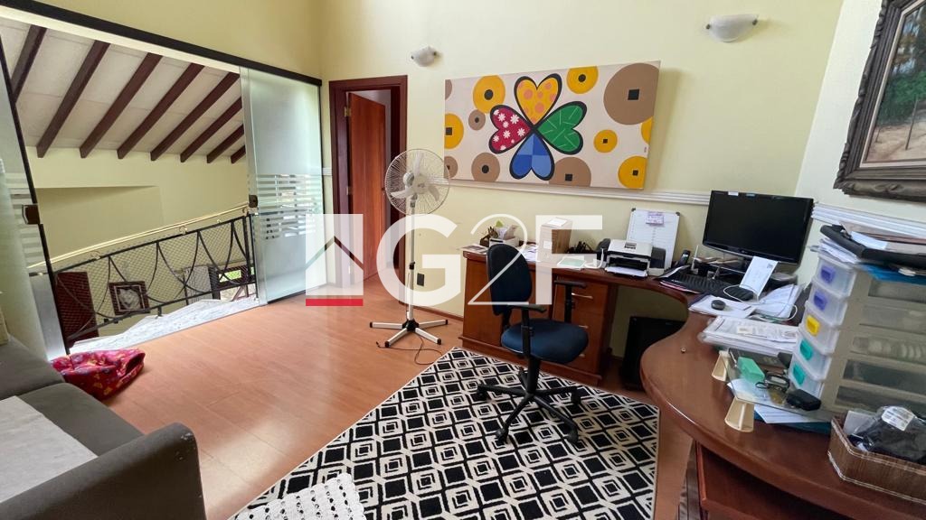 Casa com 4 suítes, sendo 3 na parte de cima e uma no térreo, lavabo, escritório, sala de estar e jantar.