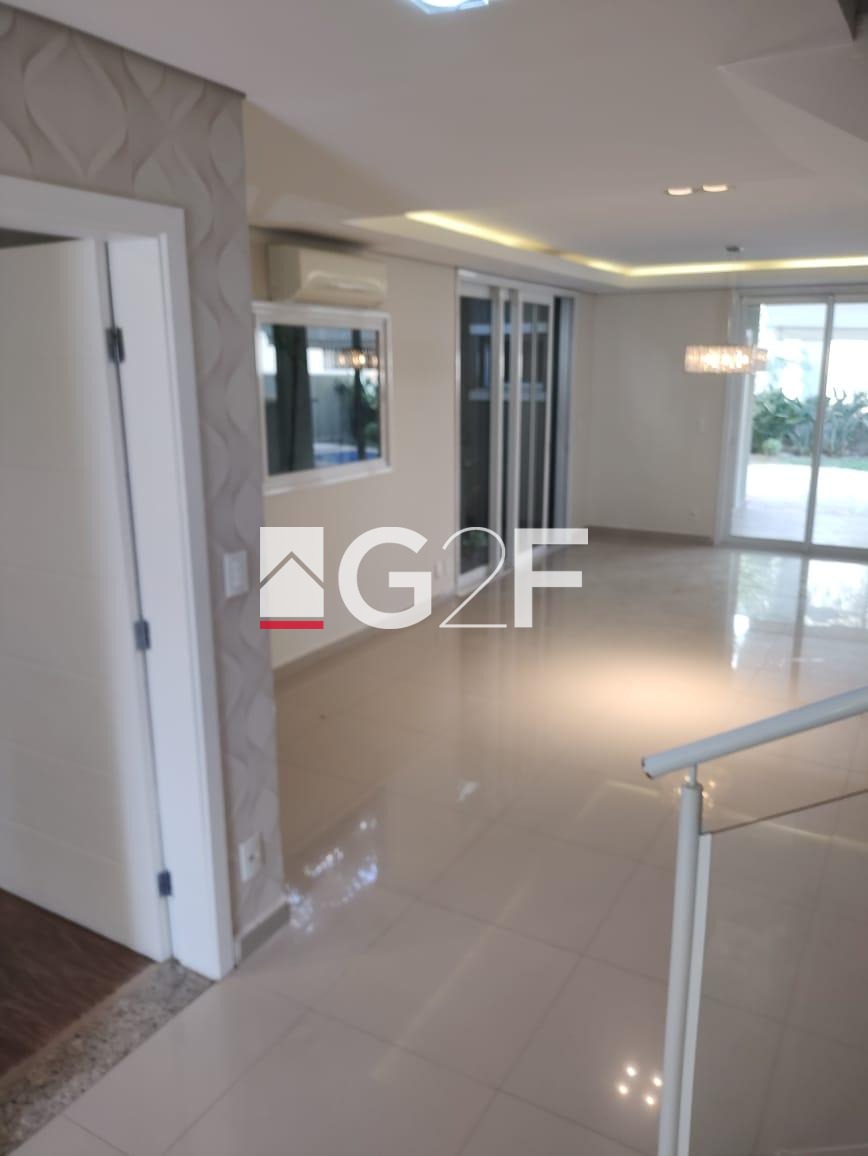 Piso superior com 3 suítes sendo a master com closet, hidro e sacada. Área gourmet com churrasqueira e piscina com spa aquecida. Acabamento clean, ar condicionado e móveis planejados.