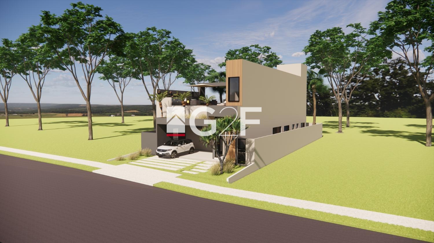 Casa em construção, no térreo está localizado o escritório, lavabo, sala de estar e cozinha integrada com pé direito duplo, depósito, despensa e área de serviço.