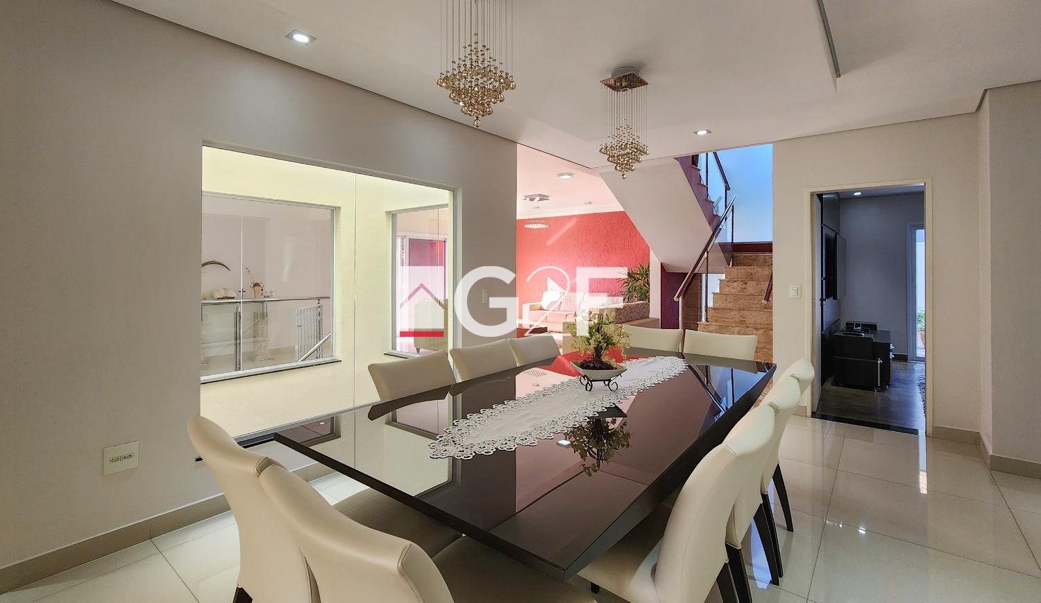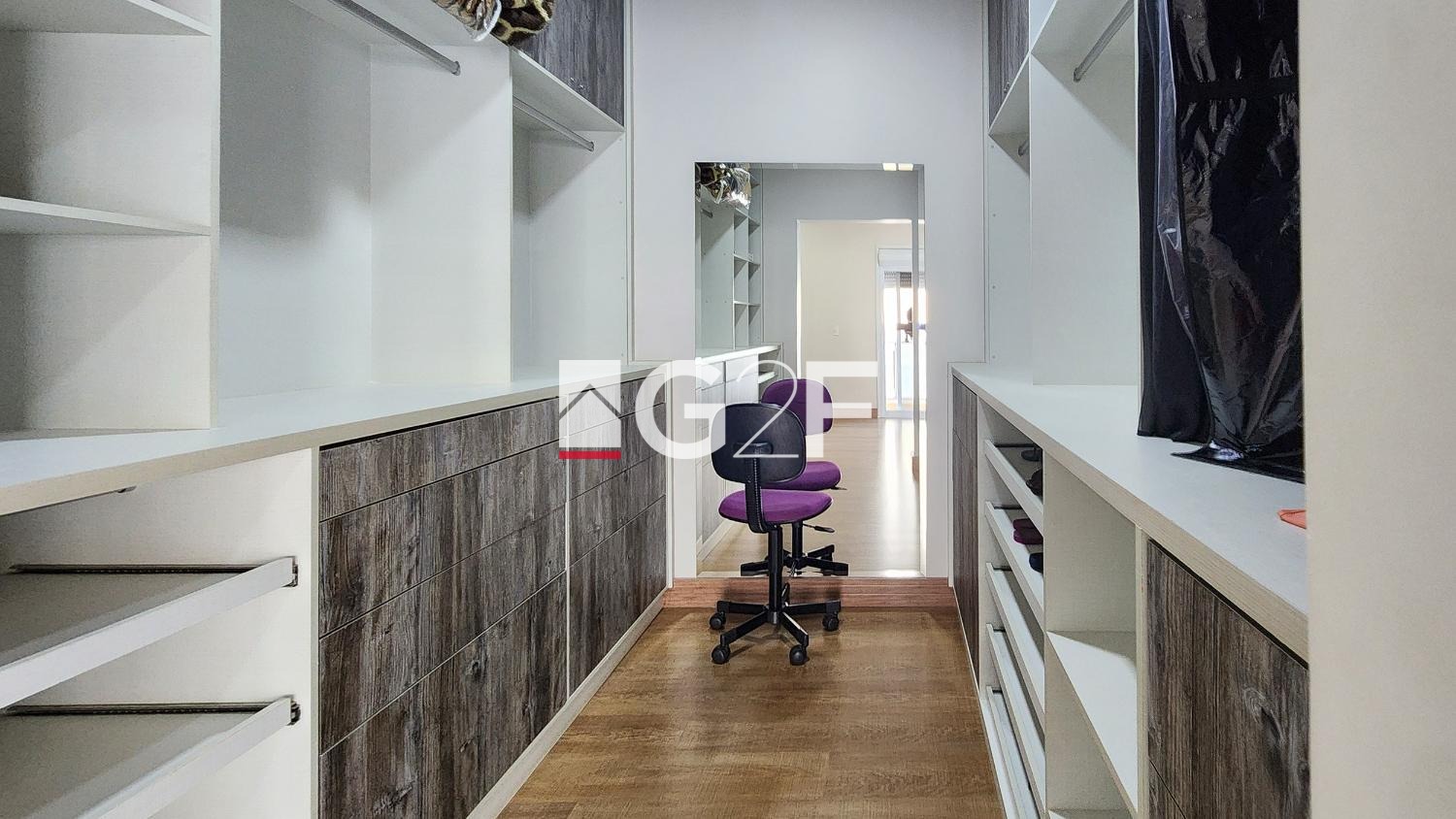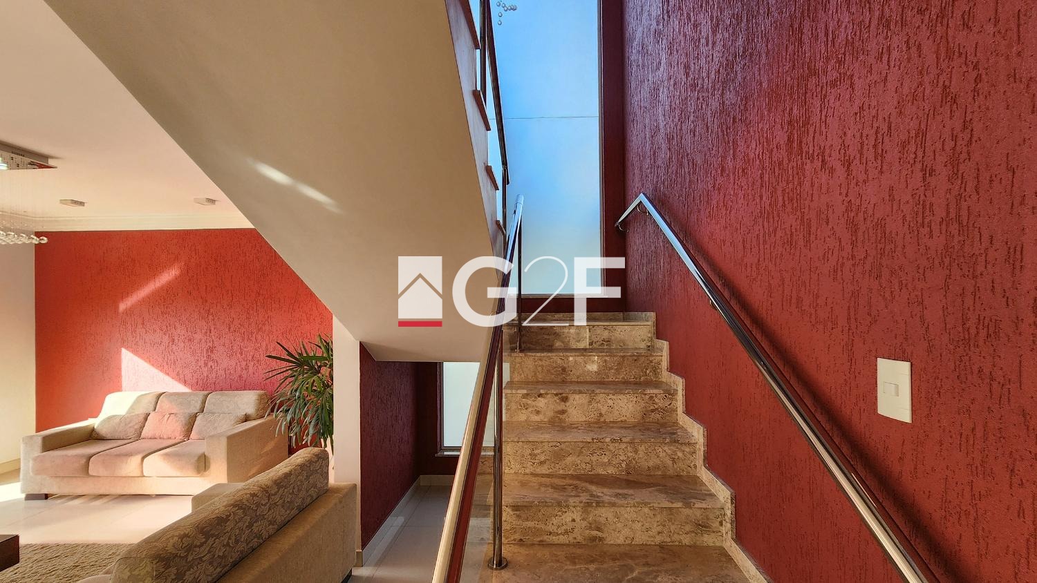 Distribuída em 5 quartos sendo 4 suítes no pavimento superior, todas com closet, sala íntima multiuso, sala de estar, sala de jantar, escritório, cozinha planejada, despensa, dependência de serviços.