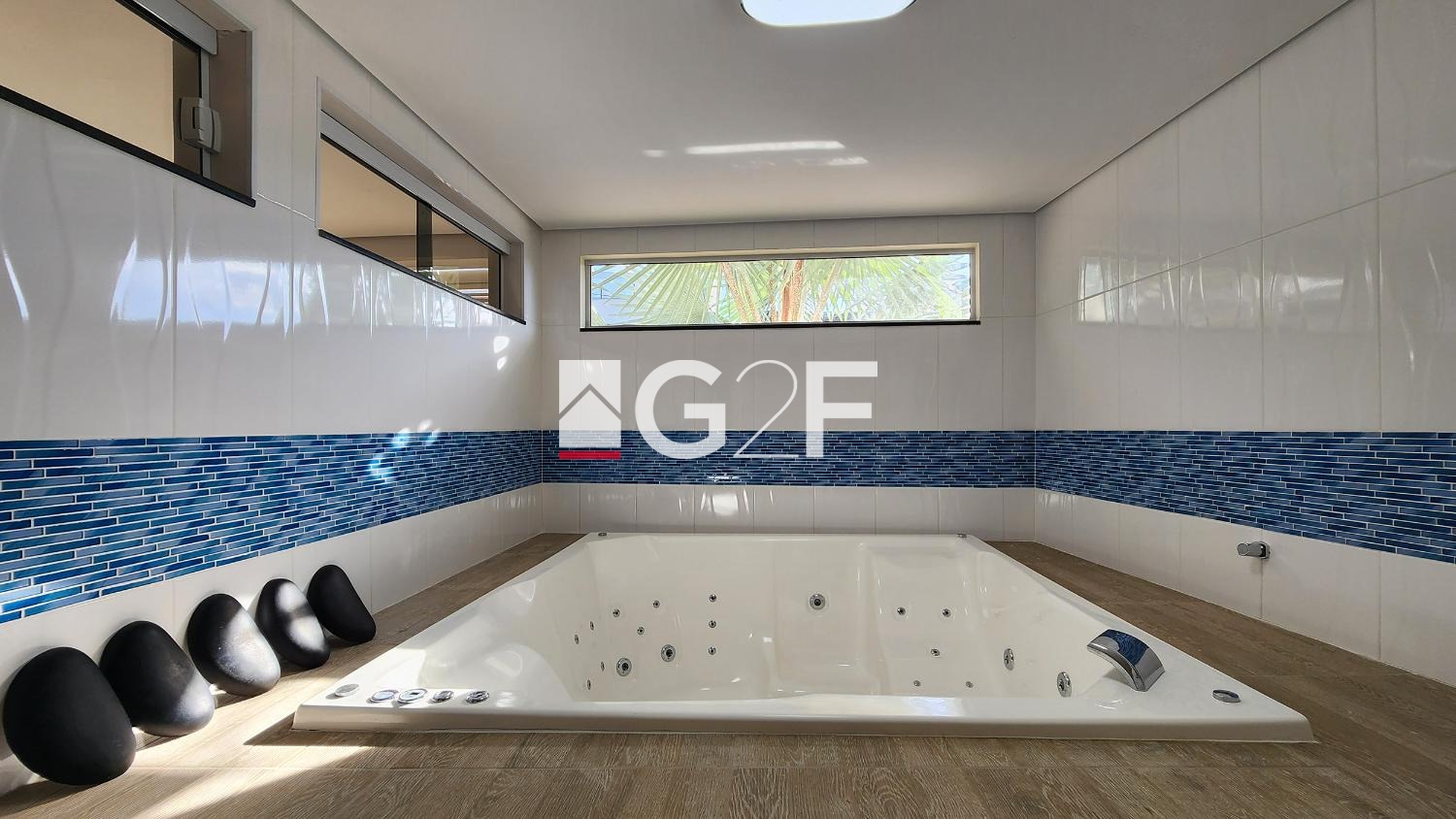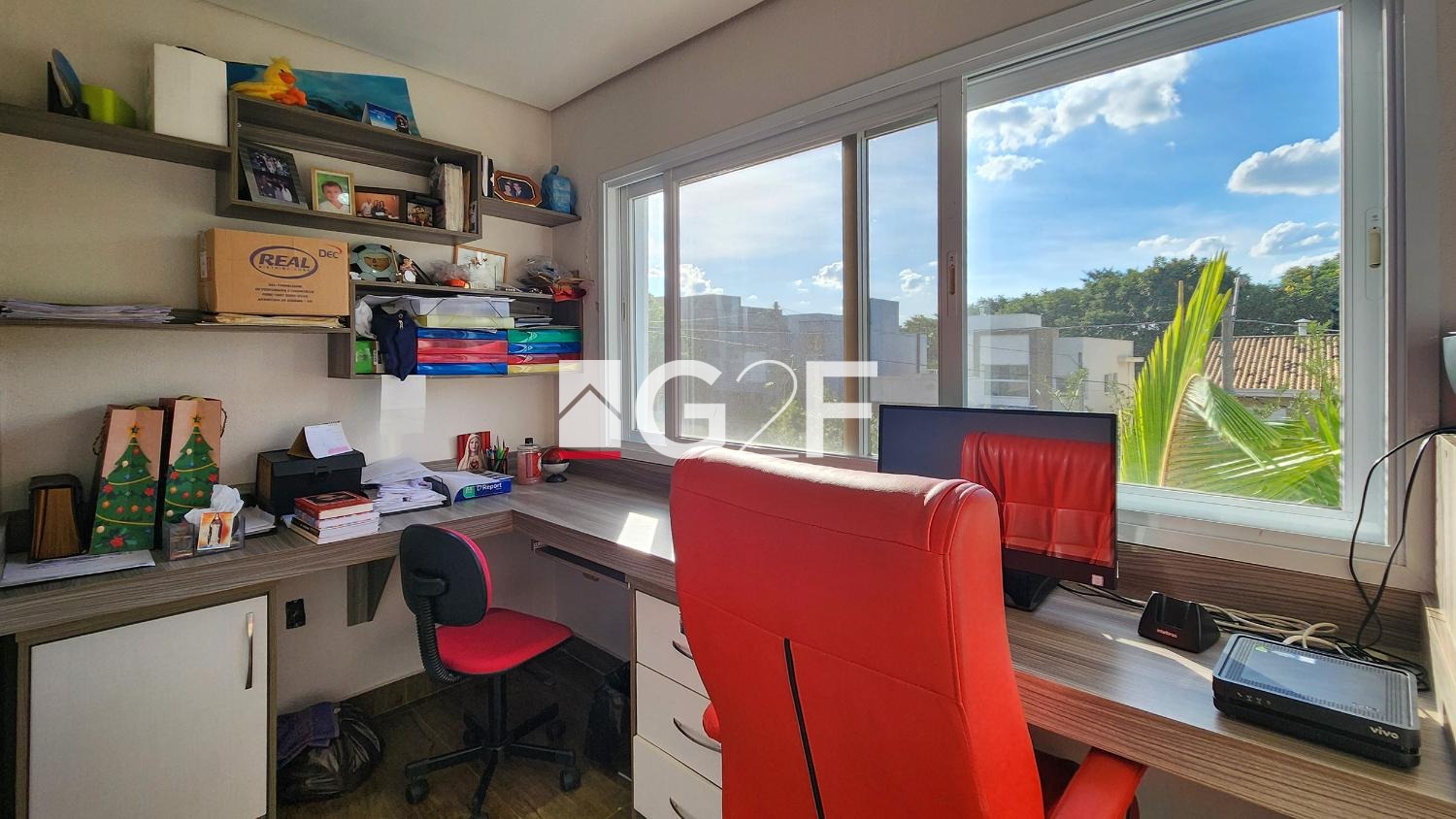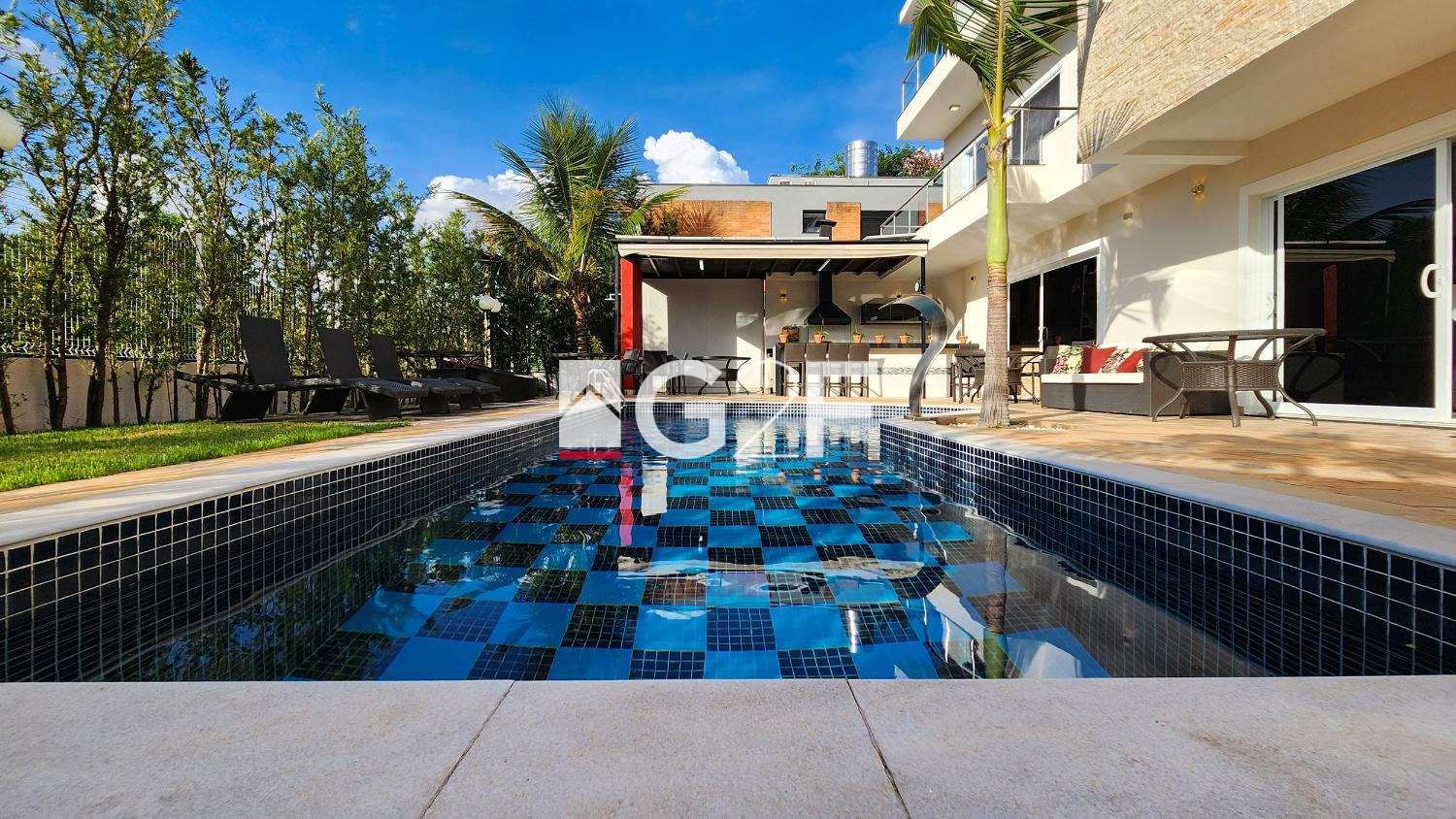 Distribuída em 5 quartos sendo 4 suítes no pavimento superior, todas com closet, sala íntima multiuso, sala de estar, sala de jantar, escritório, cozinha planejada, despensa, dependência de serviços.