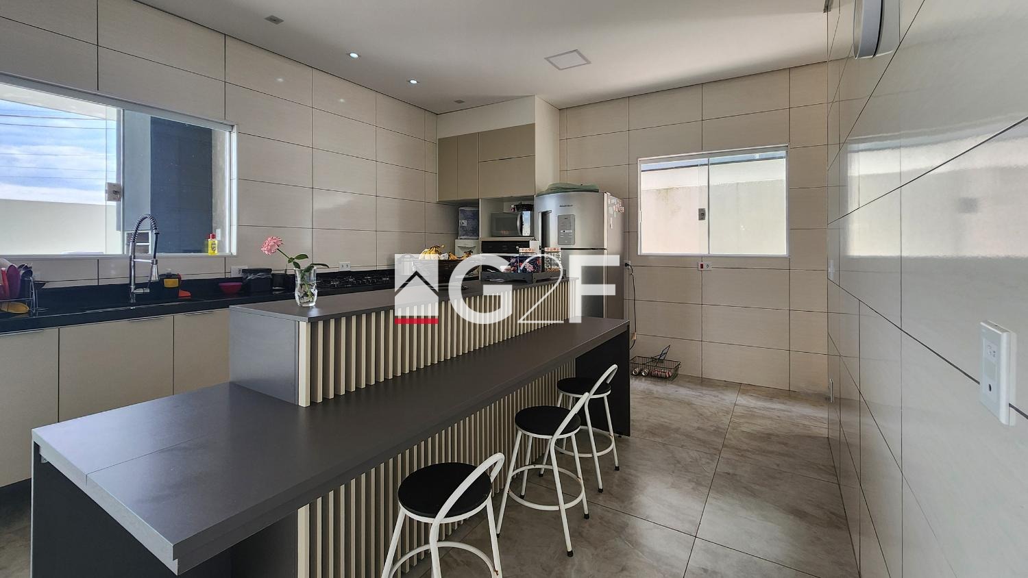 lavabo, escritório, sala TV, jantar, cozinha planejada, despensa e lavanderia.