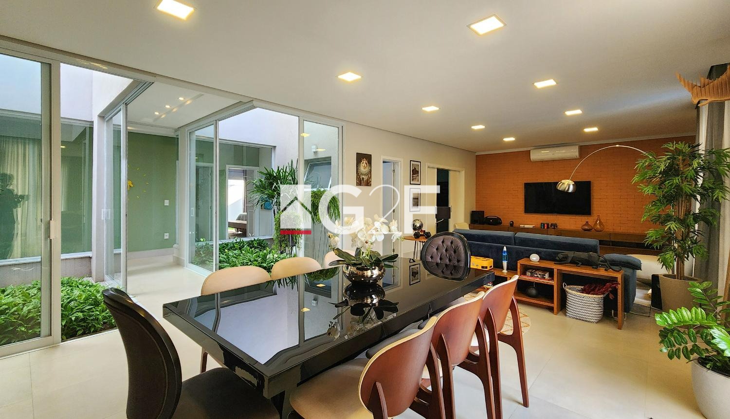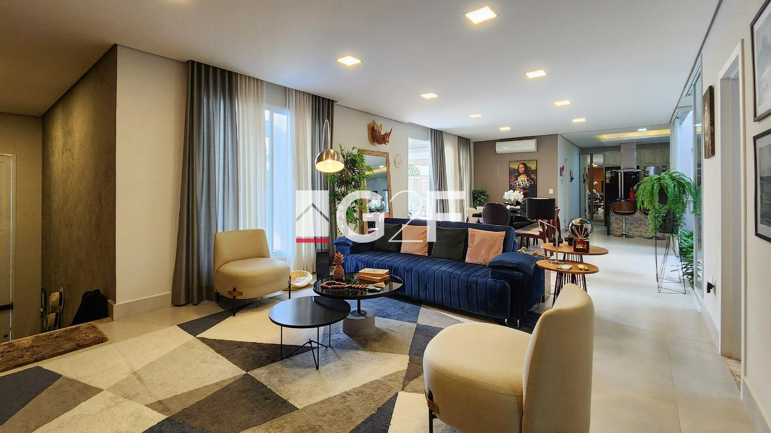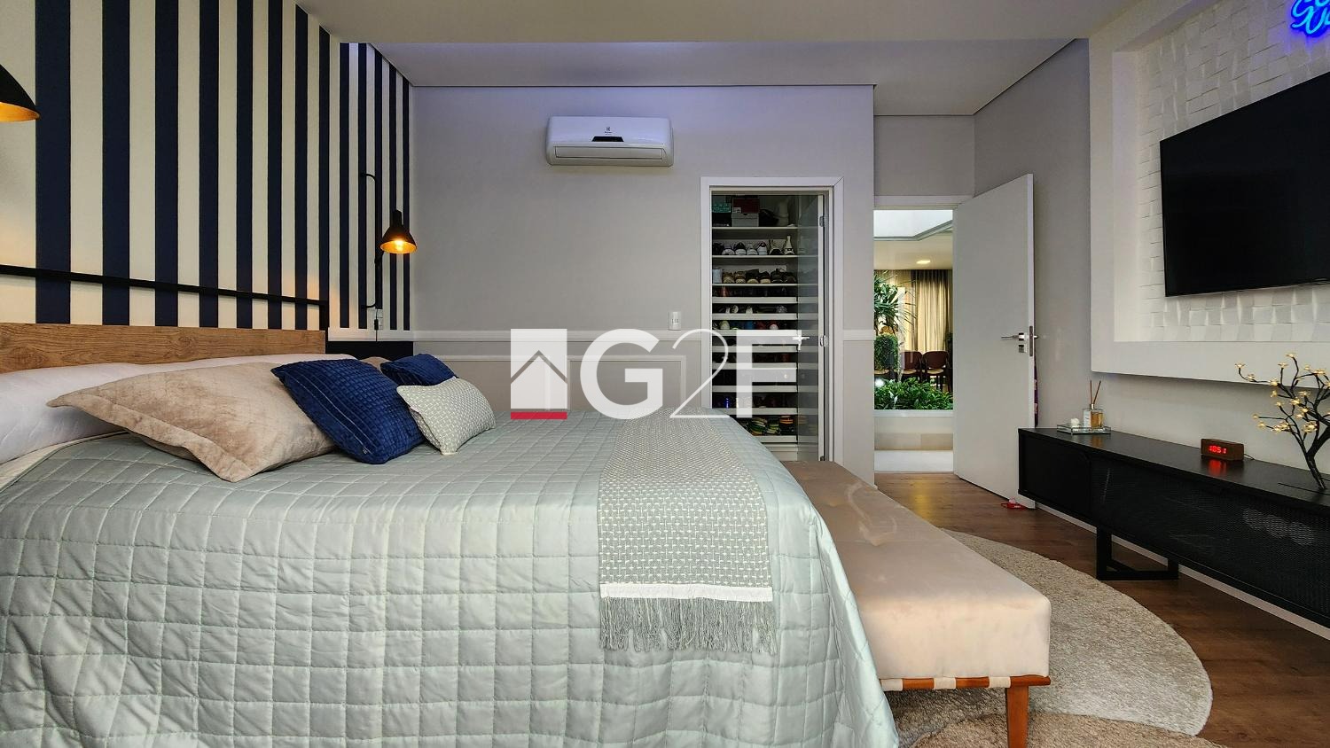Composta por 03 (três) suítes com persianas automáticas e tela mosqueteiro, sendo 02 (duas) com closet, sala de jantar, estar e cozinha (com ilha) integrada, sala de TV (home), jardim de inverno, lavabo, lavanderia, depósito na garagem, ainda com o diferencial de 06 (seis) vagas de garagens!