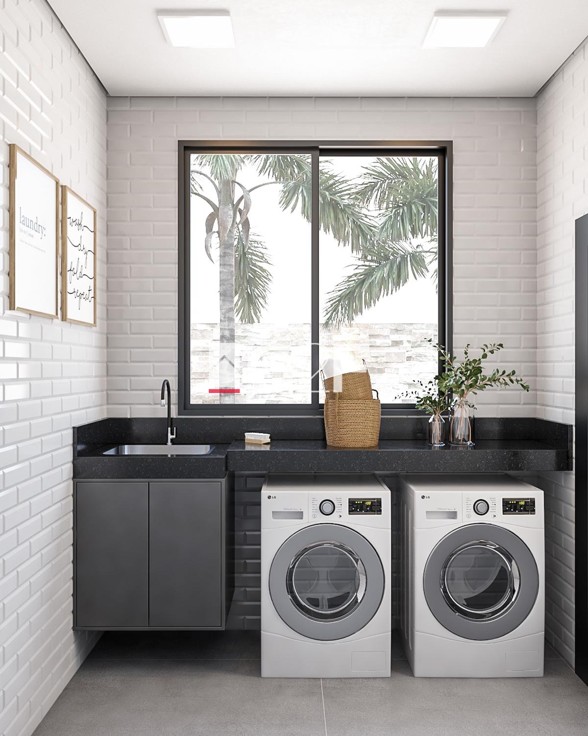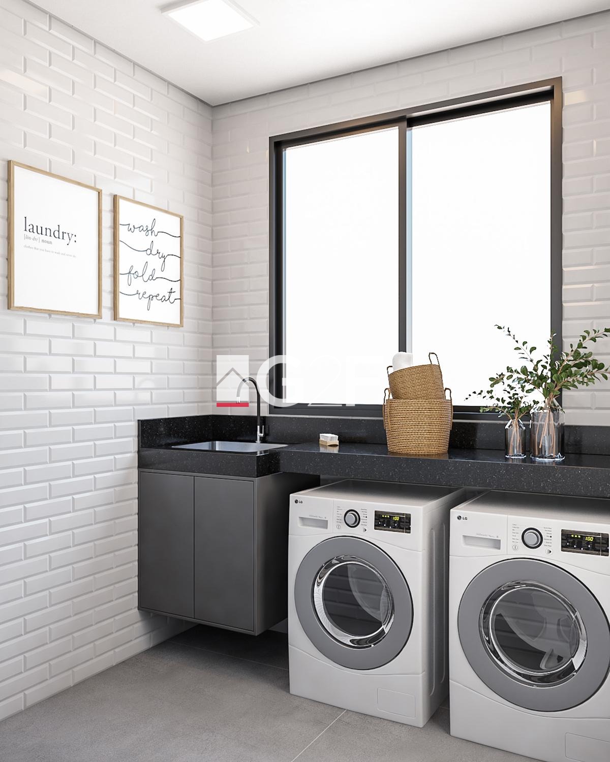 A casa será entregue com móveis nos quartos, banheiros, cozinha e lavanderia.