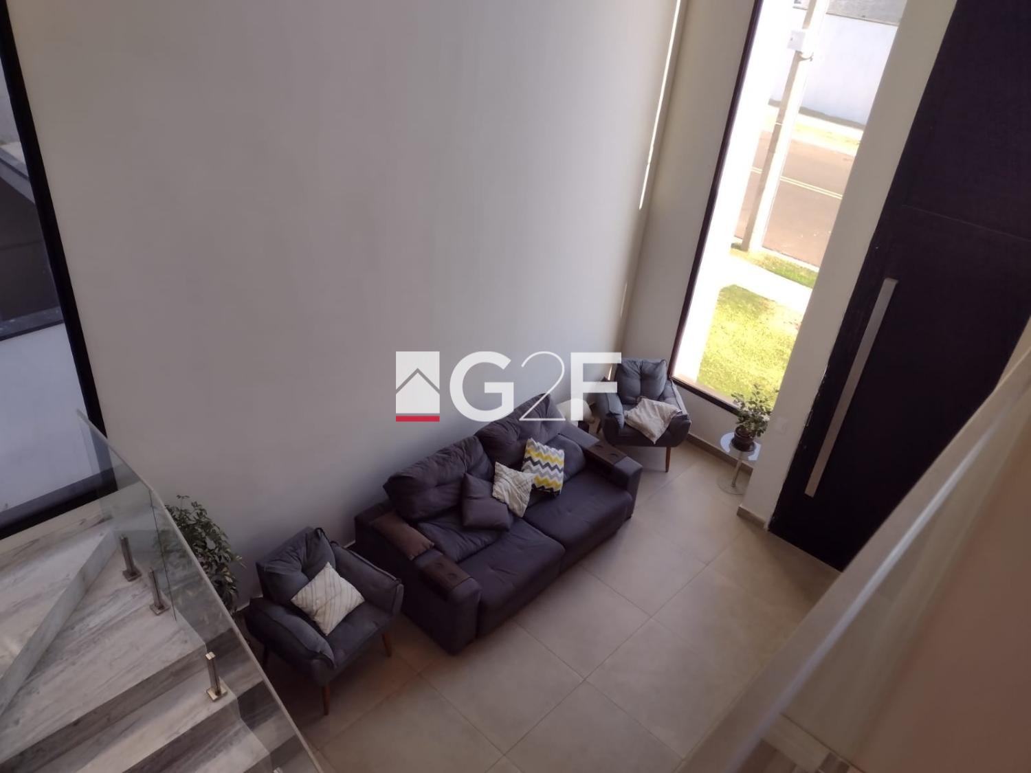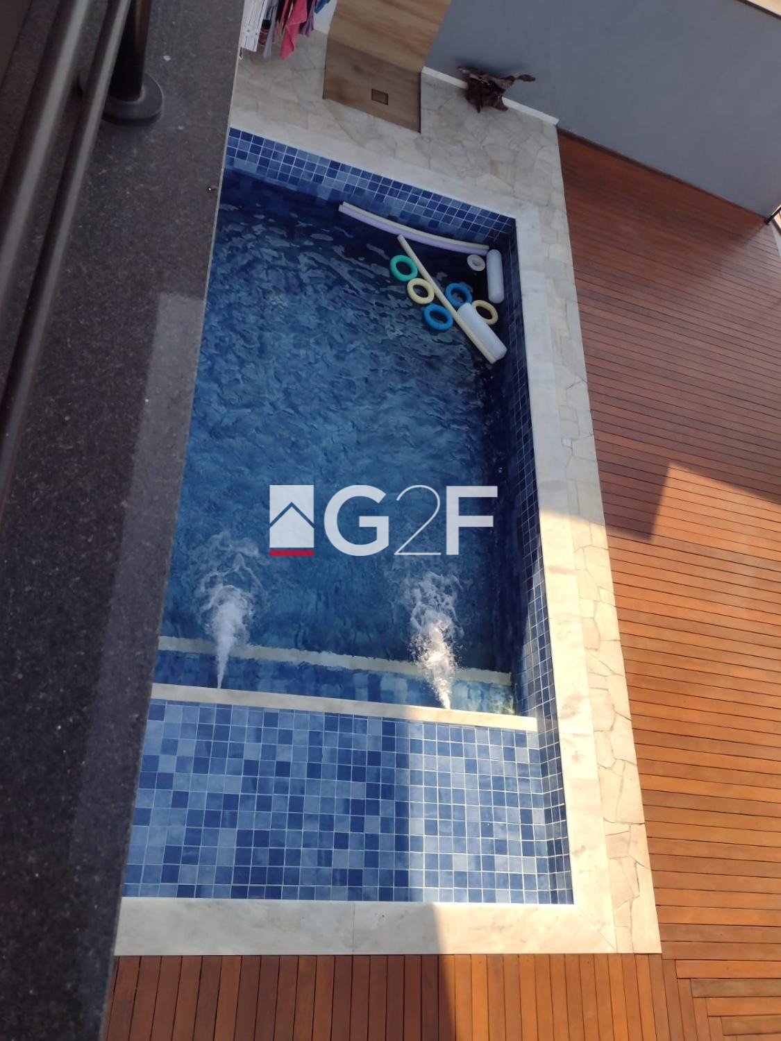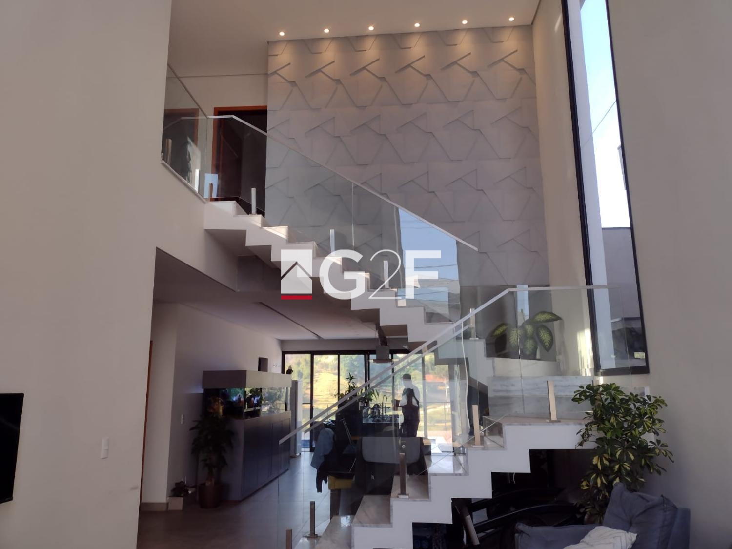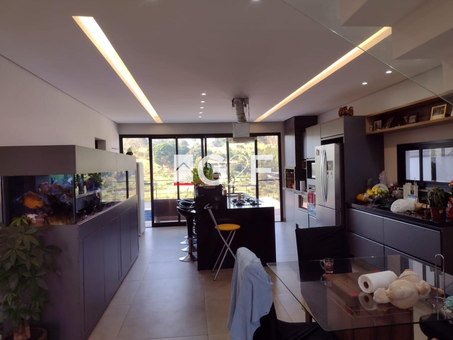 Casa nova, conceito moderno e clean, ambientes amplos, iluminação natural perfeita, 4 suítes com closet inclusive sendo uma no piso térreo, excelente acabamento, sala com pé direito duplo e conjugada com cozinha e área de lazer, que oferece piscina, churrasqueira e deck com vista exuberante, portaria e vigilância 24hs. Possui preparação para aquecimento solar.