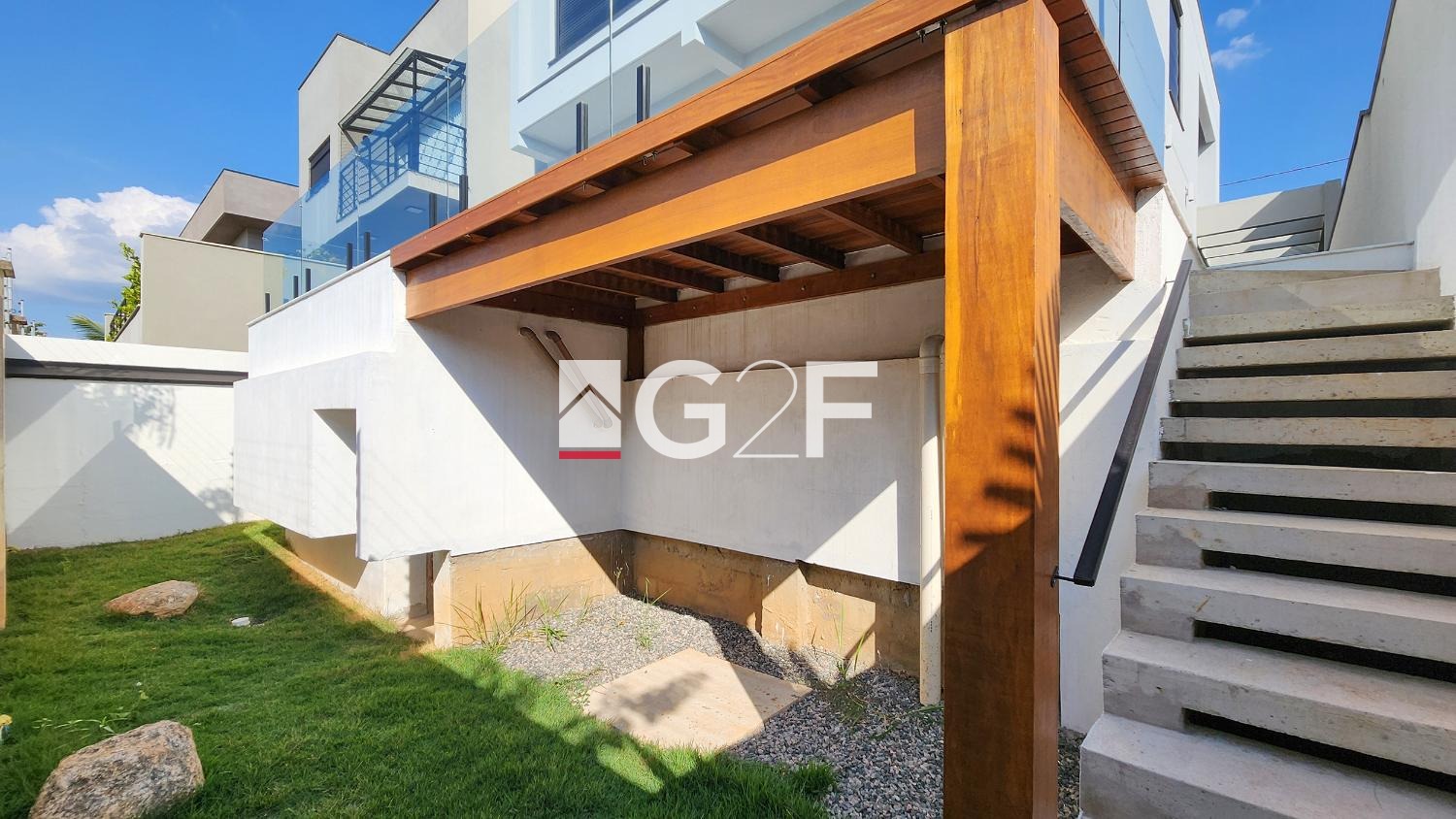 Sobrado moderno à venda com pé-direito duplo, fino acabamento, ambientes integrados e excelente projeto de ventilação e iluminação naturais.