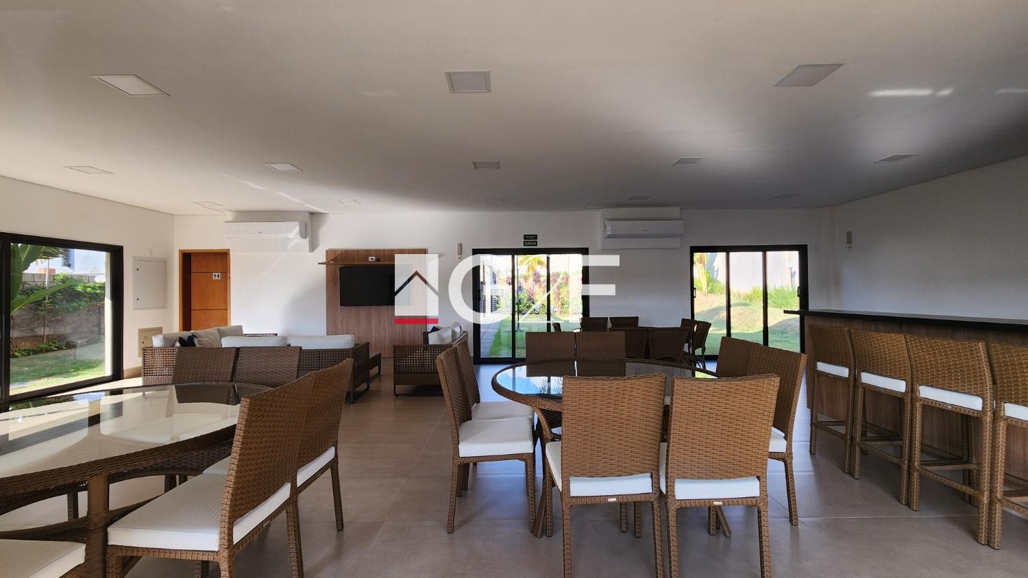 Lazer no condomínio com piscina, academia, quadra poliesportiva, salão de festas, espaço gourmet, playground e área de preservação interna com pista para caminhada.