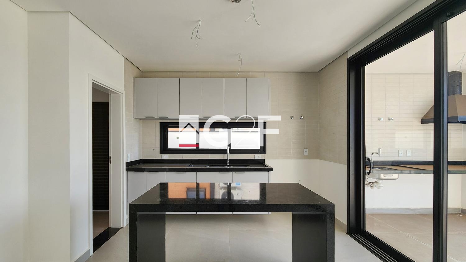 Área gourmet com churrasqueira, pia, cooktop e planejados.