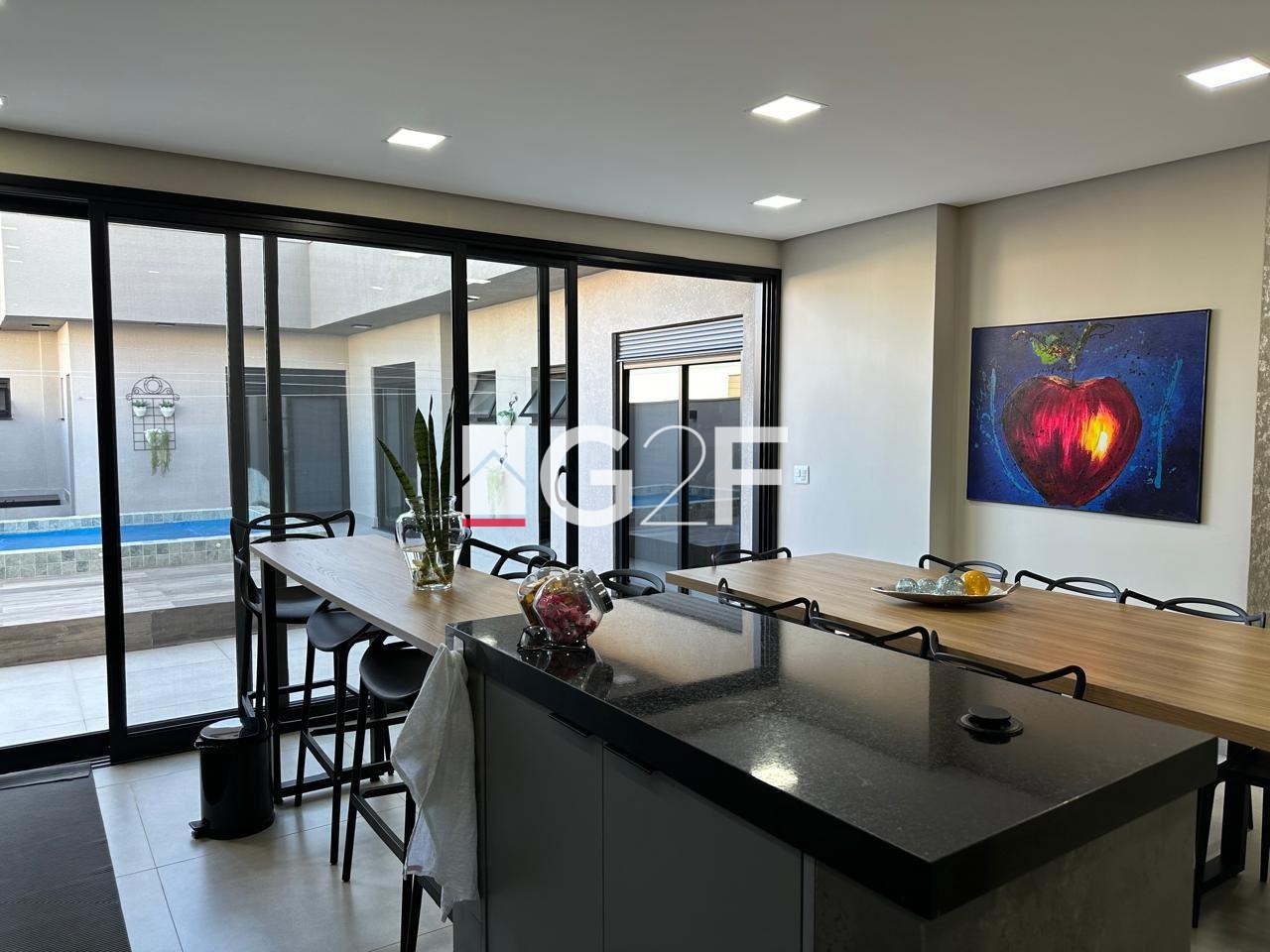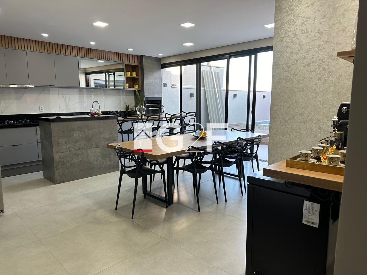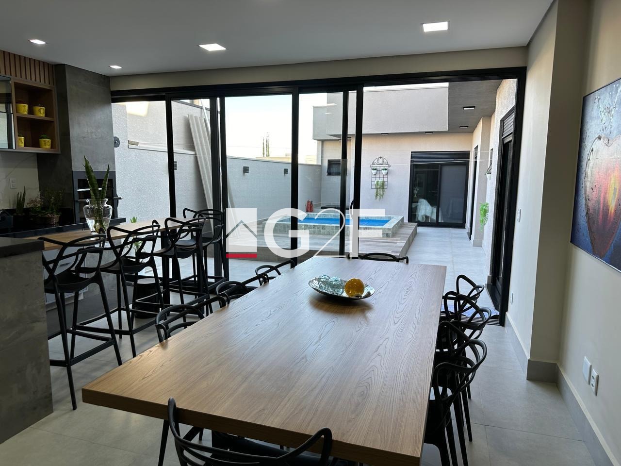 Excelente iluminação natural em todos os cômodos. Possui suíte master com duas cubas e closet. Cozinha com cooktop no estilo americana integrada com área gourmet e grande despensa. Ampla garagem para quatro veículos.