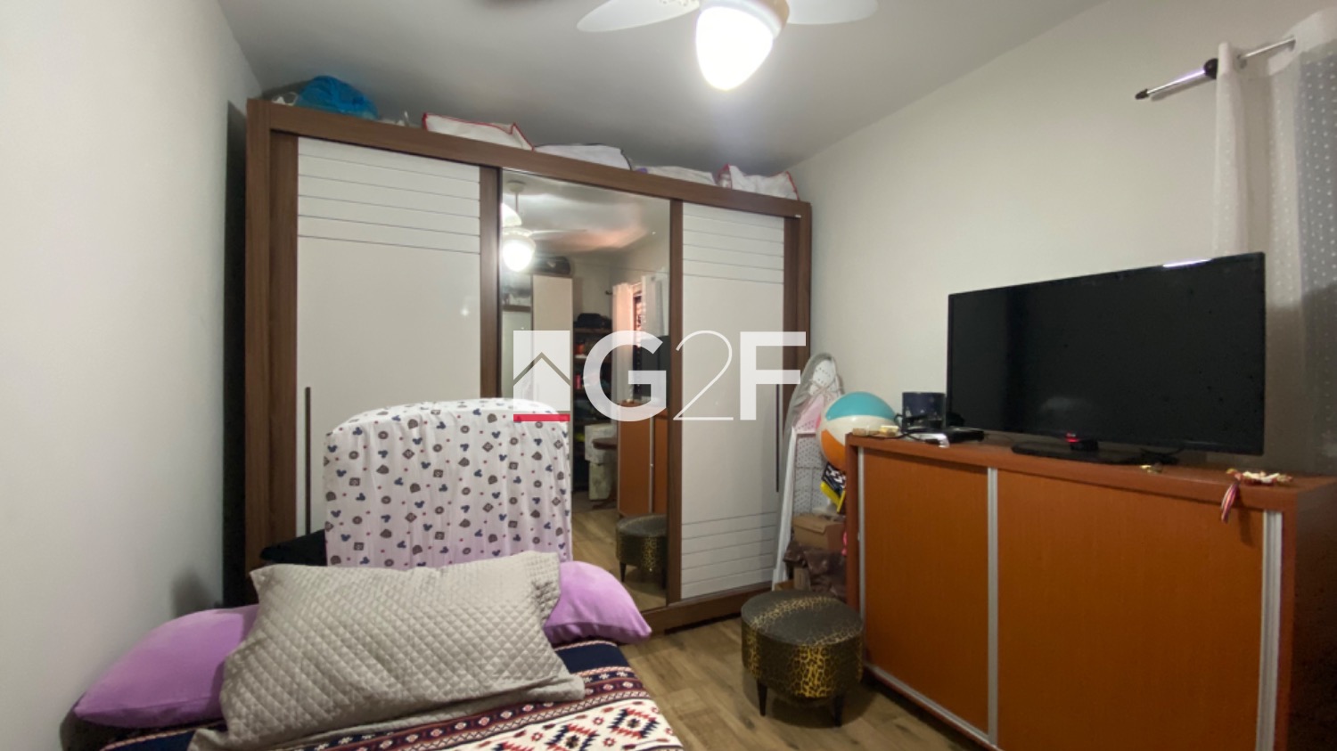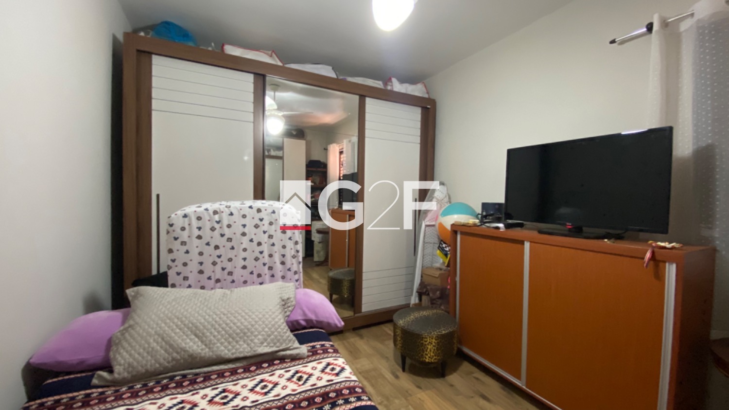 Casa fundo: sobrado com sala 2 ambientes, cozinha planejada, piso superior com 2 quartos e banheiro.