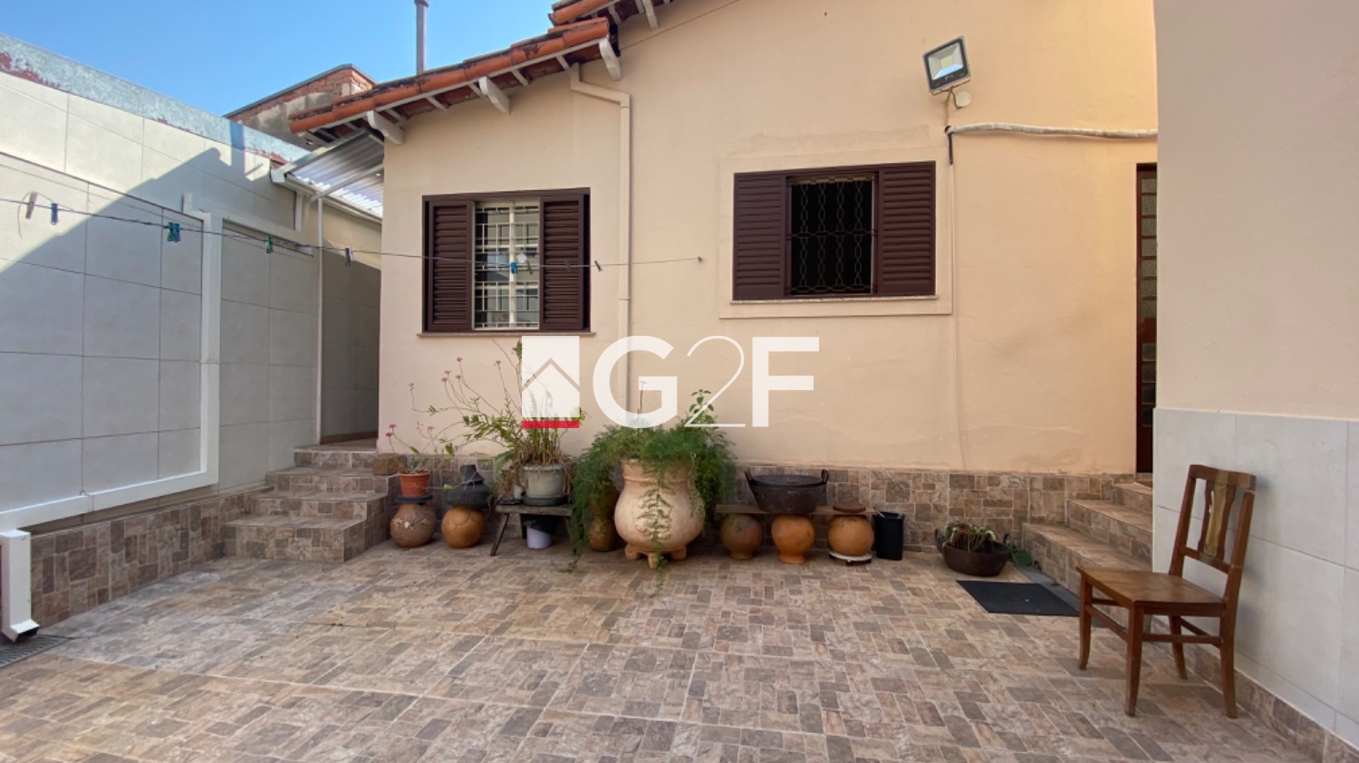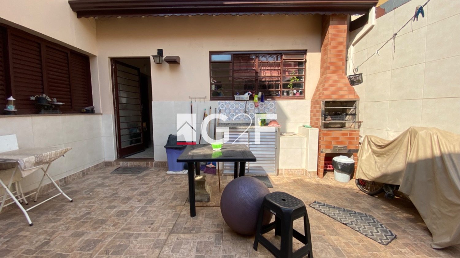 Quintal com churrasqueira.