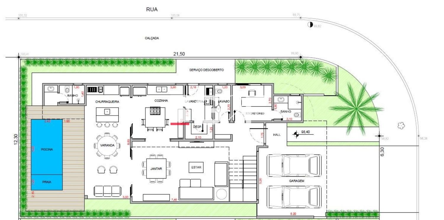 Amplo living com pé direito duplo, lavabo, cozinha ampla, despensa e lavanderia. Integrada à cozinha temos uma linda área gourmet para a reunião de família e amigos com piscina.