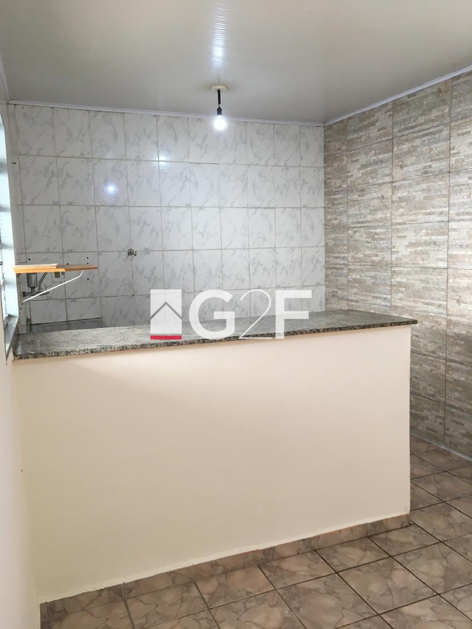 A casa no fundo possui um dormitório, sala, cozinha, banheiro e área de serviços.