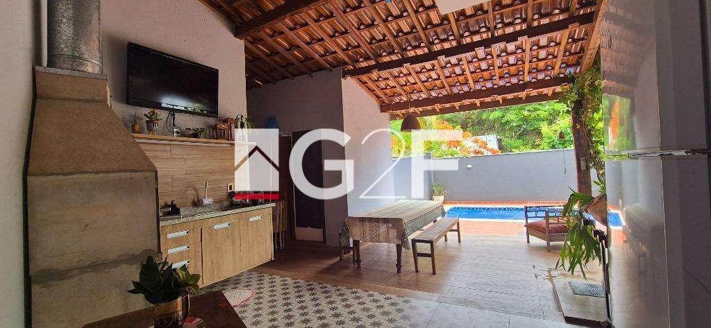 Conta com área de serviço, copa, cozinha, despensa, 2 varandas e lavabo. Com 2 banheiros, 3 dormitórios (sendo 2 suítes), 1 LAVABO, 1 sala de estar para dois ambientes, sala de jantar e sala de TV. A casa possui também uma excelente área gourmet, com churrasqueira, piscina e um lindo quintal, integrando um ambiente muito acolhedor e aconchegante para toda família e amigos.