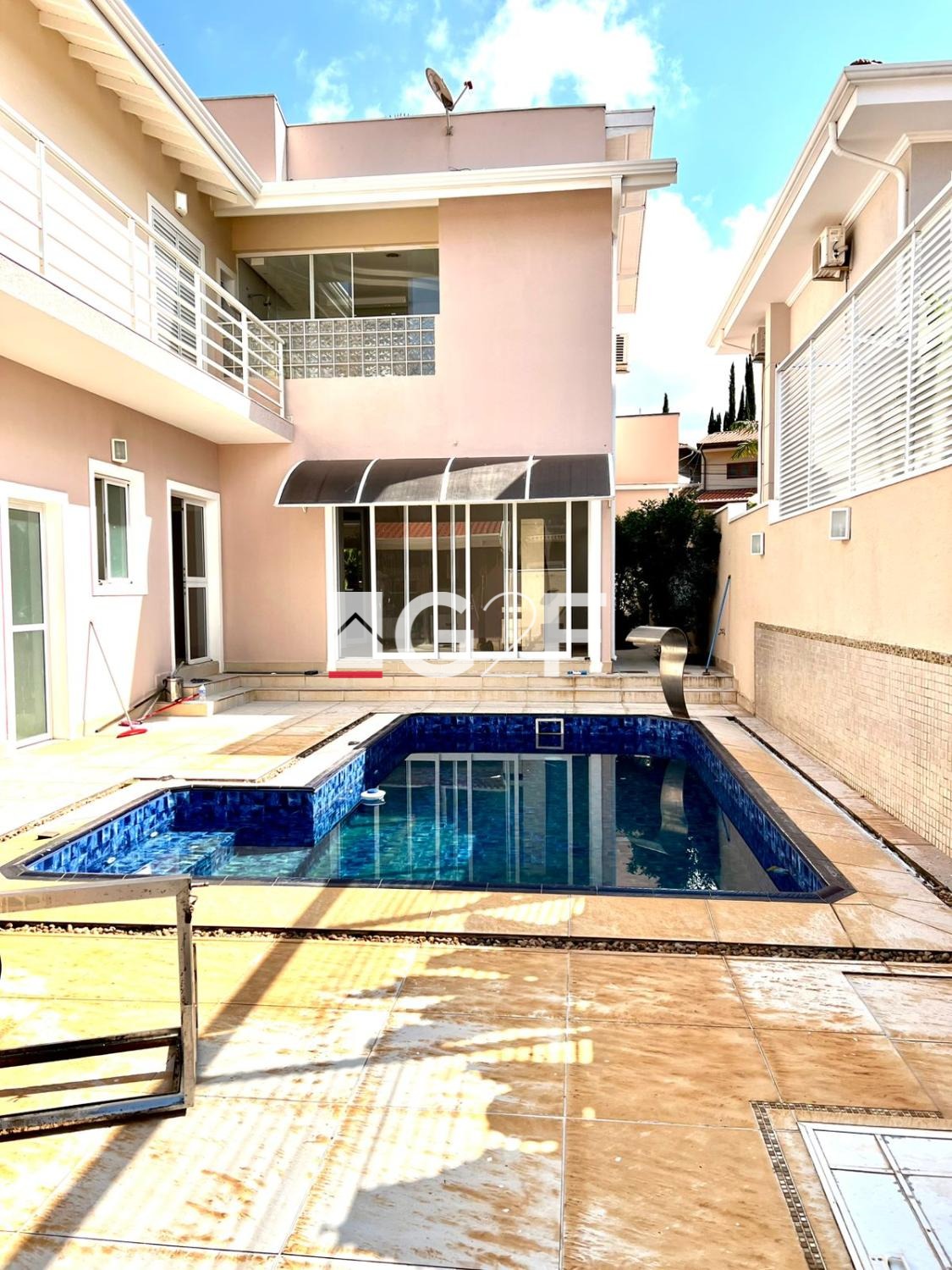 A casa possui 4 suítes, 3 closets, 1 master, todas suítes com porta balcão em alumínio e varanda, 3 salas sendo uma dupla e uma sala no andar de baixo reversível para + 1 quarto, 1 sala de TV totalmente acústico, lavabo, jardim de inverno, porcelanato da PORTO BELO em todos os ambientes até na sauna, todas suítes com varanda, cozinha dois ambientes, despensa, lavanderia, rico em armários embutidos e planejados, teto rebaixado, sanca, área de gourmet com churrasqueira, piscina com cascata, sauna com vestiário banheiro, sistema de aquecimento a gás, garagem para 4 veículos, ótimo paisagismo, área construída de 402m, terreno com 397m.