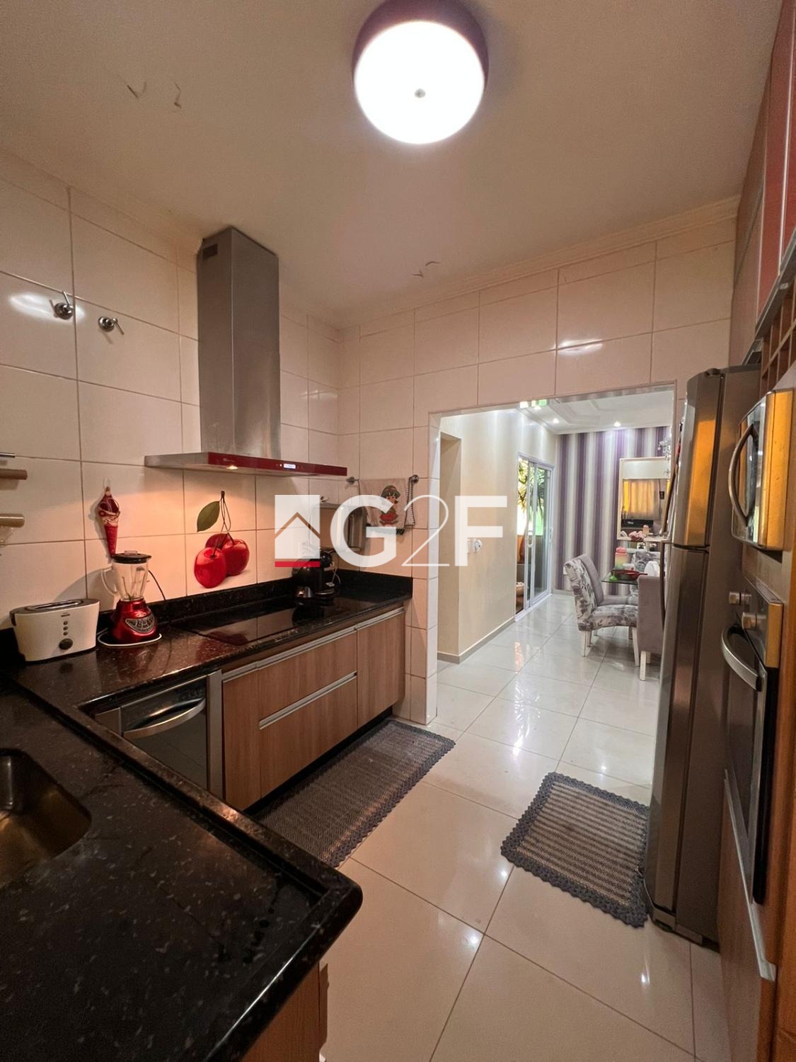 Imóvel com 3 quartos sendo um suíte com hidromassagem, sala de estar, sala de tv, cozinha com planejados, quatro banheiros e garagem.