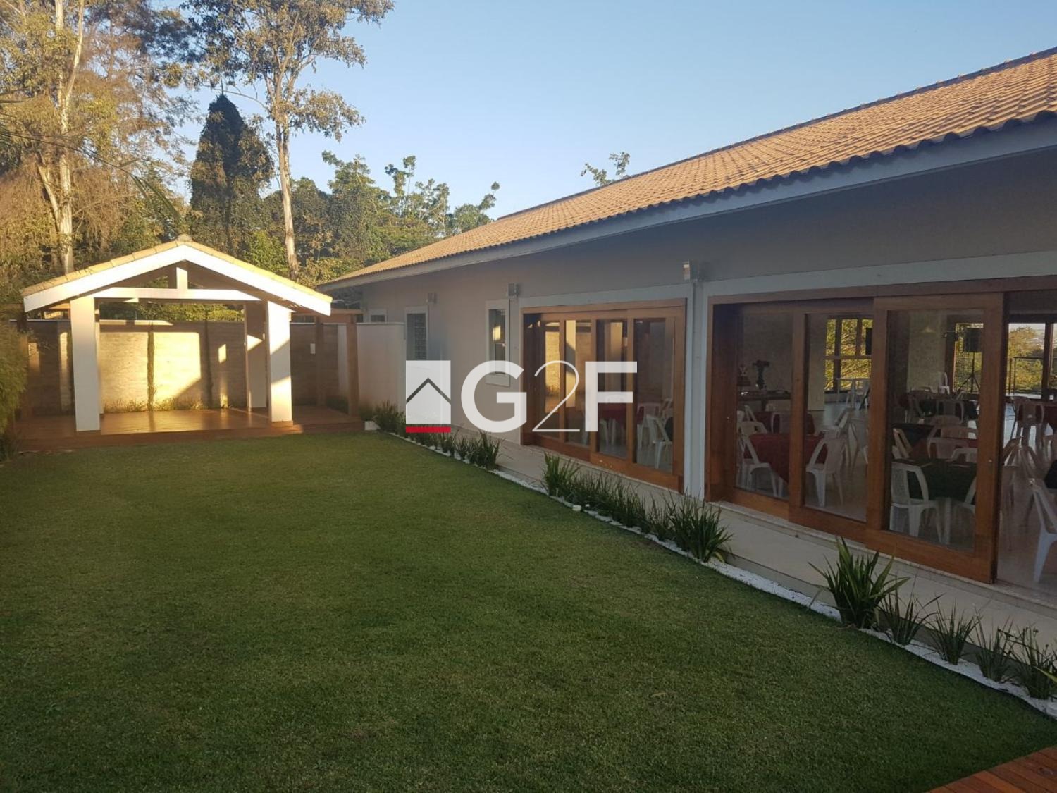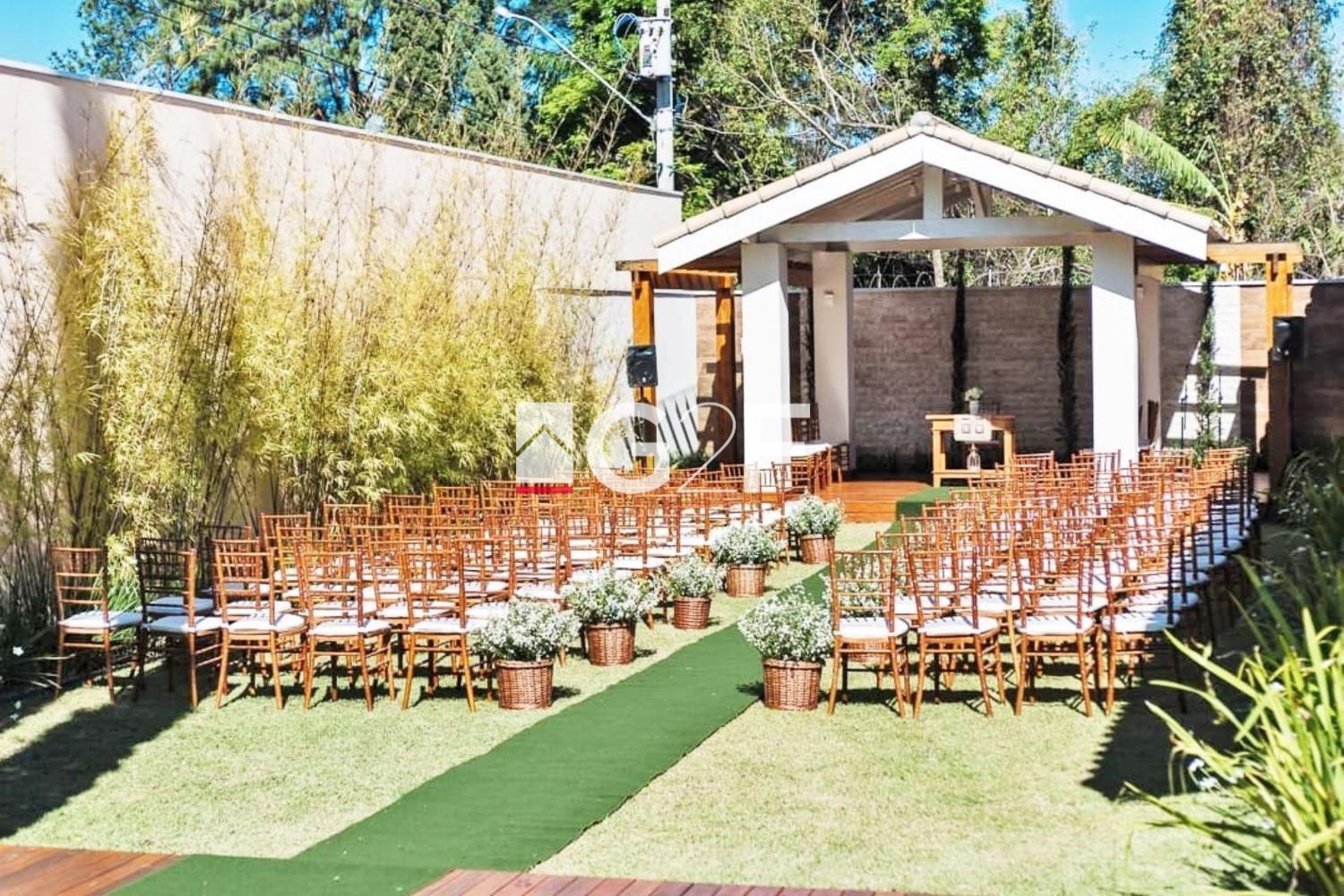 Nova área construída com 520m2, área externa com gazebo para cerimonial, salão para festa com capacidade para 200 pessoas, banheiros individuais, privativo e fraldário, cozinha ampla para buffets, churrasqueira com espaço exclusivo, escritório, quartos extras, varanda com deck 15 metros vista arborizada, casa ampla para caseiro, estacionamento para 30 veículos, materiais e revestimentos como acabamento todos novos. Um ótimo investimento com retorno garantido, ponto de grande procura para realização de eventos. Ideal também de montar o seu negócio como, Casa de repouso, Academia, Escritório, etc...
