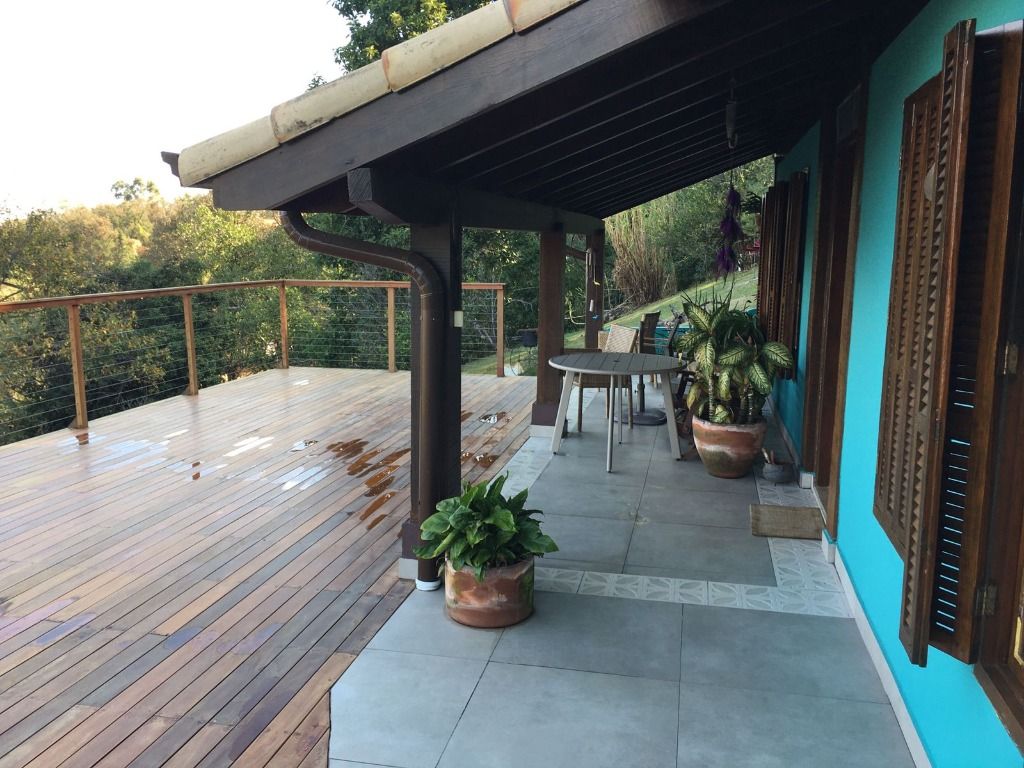 Deck com vista encantadora, piscina, área de churrasqueira e forno! São 200m² de área de lazer. Casa para caseiro, chácara espetacular!