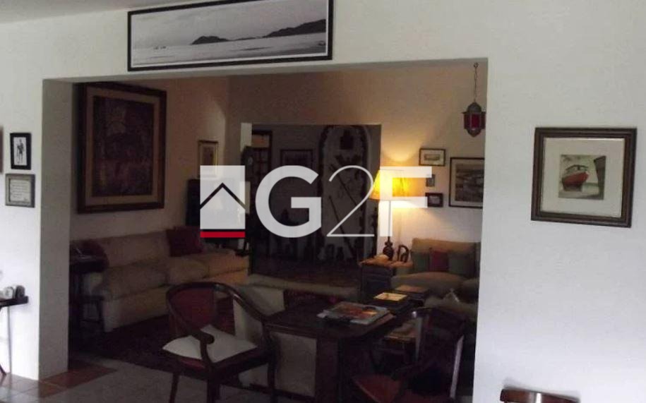 Constituída por residência principal, com vista para o pôr do sol, está a 6 metros acima do nível da rua, é térrea, com 228 m², de área construída, contém hall de entrada, lavabo, cozinha, sala de estar com lareira, sala de estar com terraço, sala de jantar, 3 suítes, sendo uma máster.