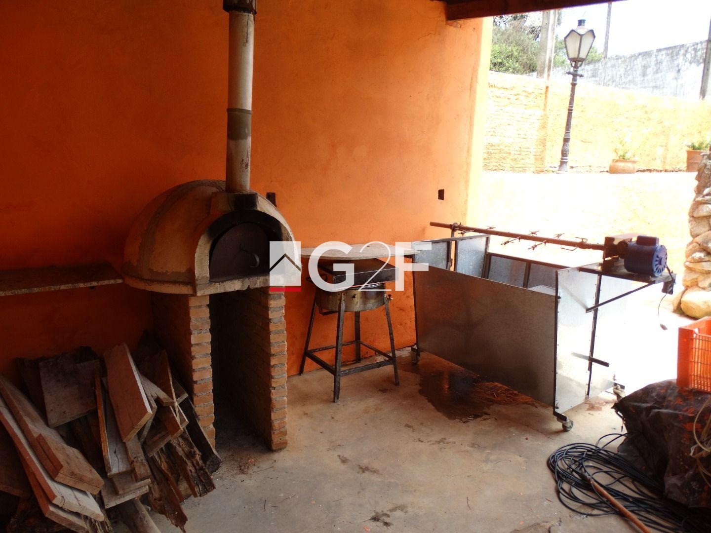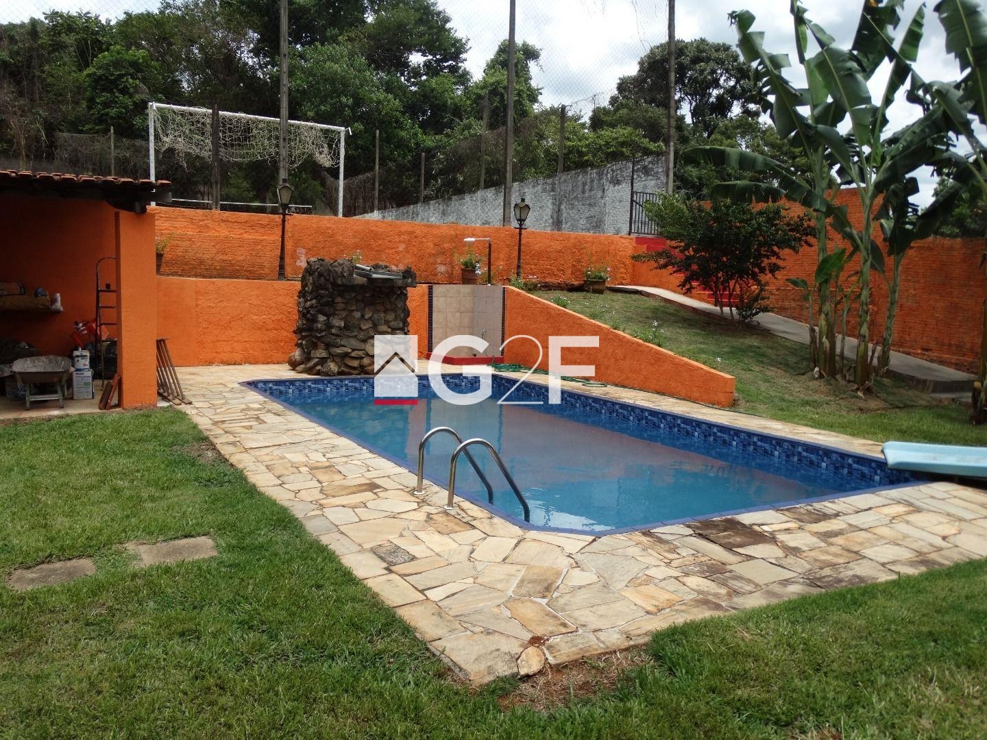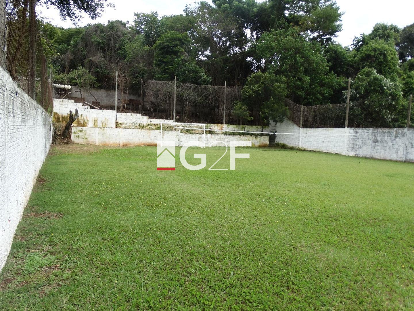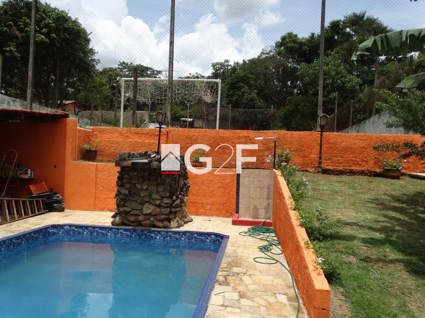Área de lazer com churrasqueira, jardim com iluminação, forno e fogão a lenha, forno de pizza e churrasqueira giratória e som ambiente. Piscina com cascata, toboágua e ducha e mini campo de futebol com gramado e alambrado medindo 20x30 metros.