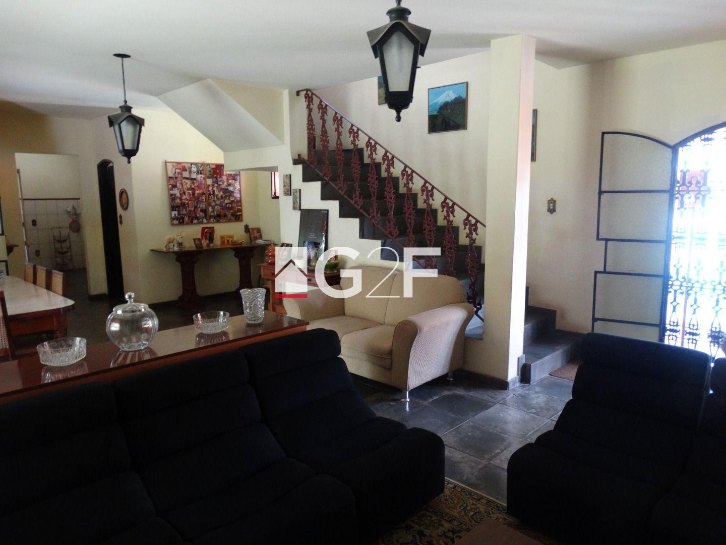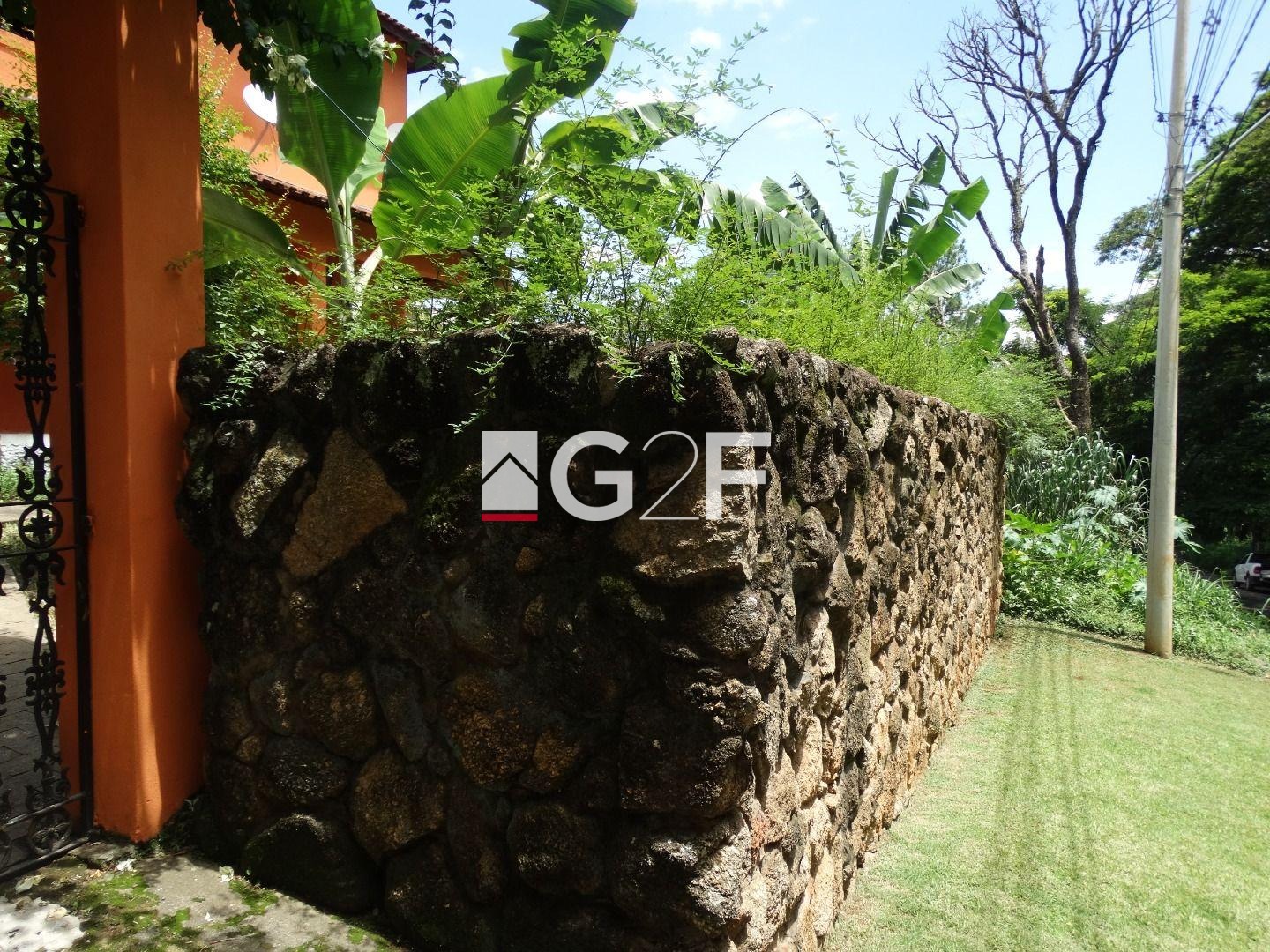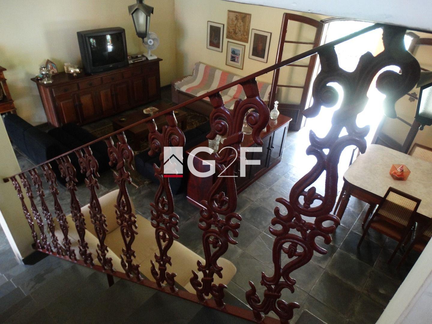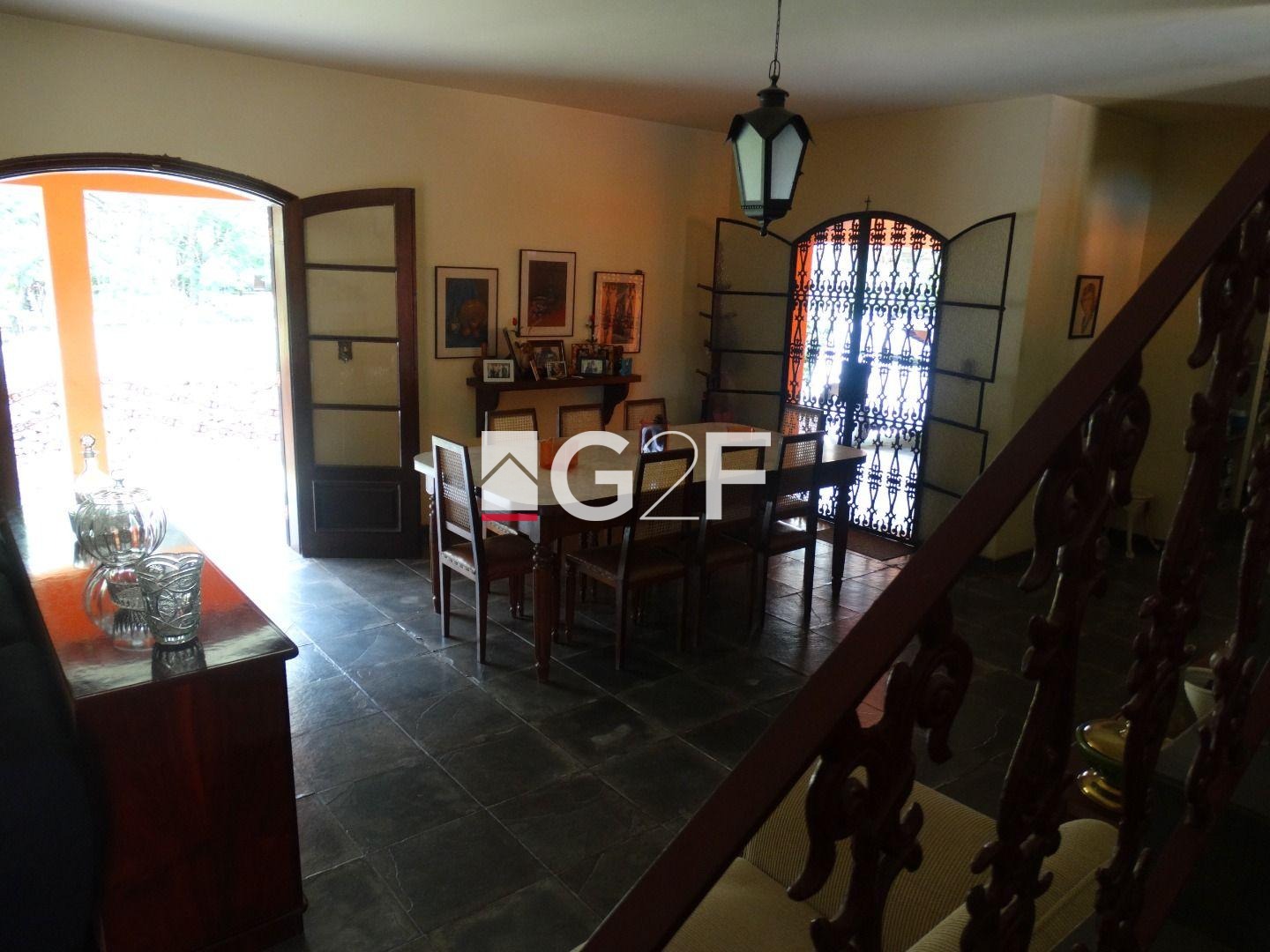 Fundos com dependência de serviço, 1 quarto e banheiro. 5 vagas de garagem sendo 2 cobertas, jardins com mais de 20 árvores frutíferas e varanda ao redor de toda a casa.