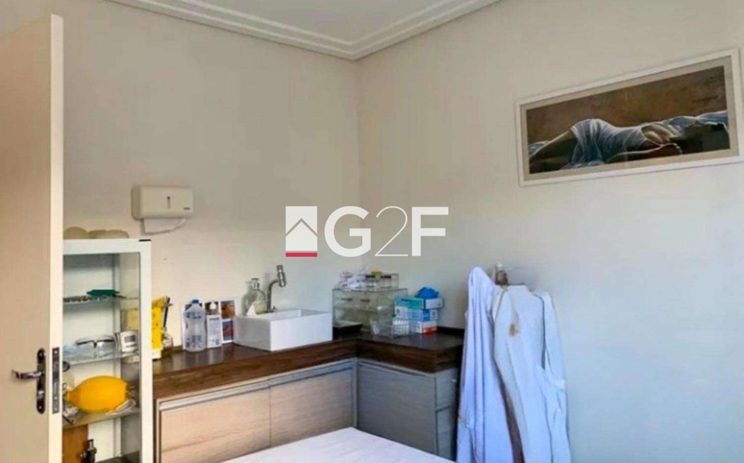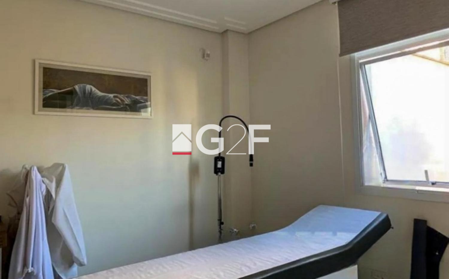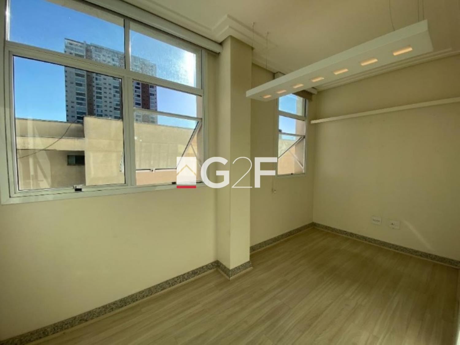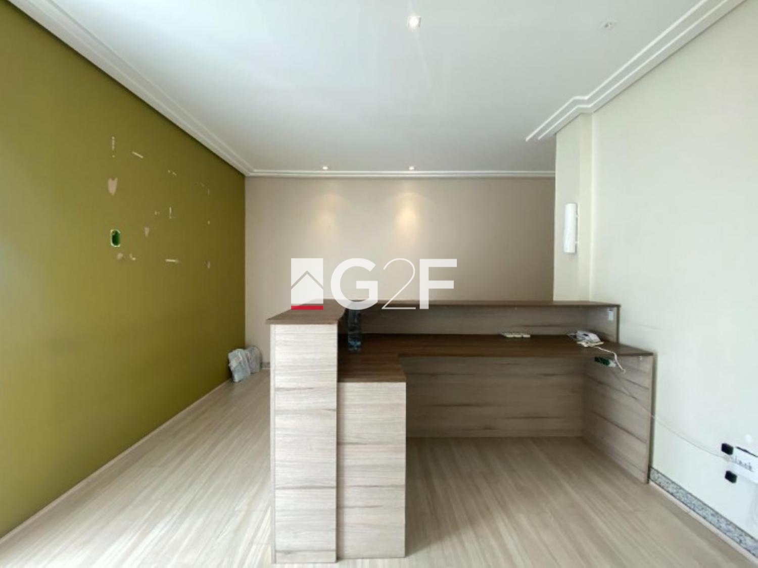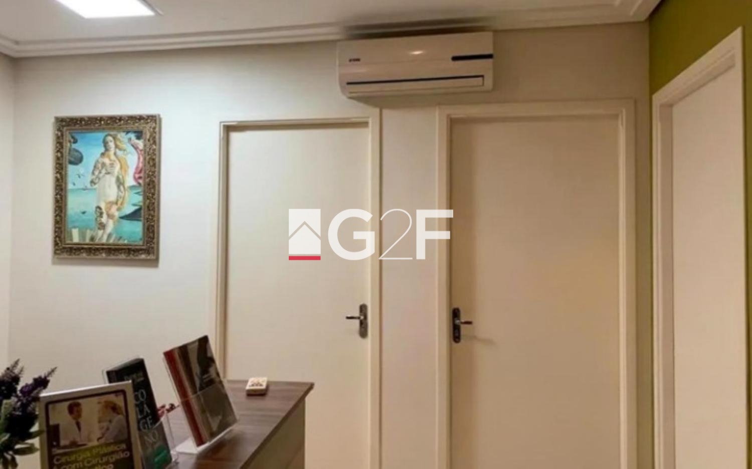 Sala ampla e arejada no bairro Cambuí, com ar condicionado central, 1 banheiro e piso frio.