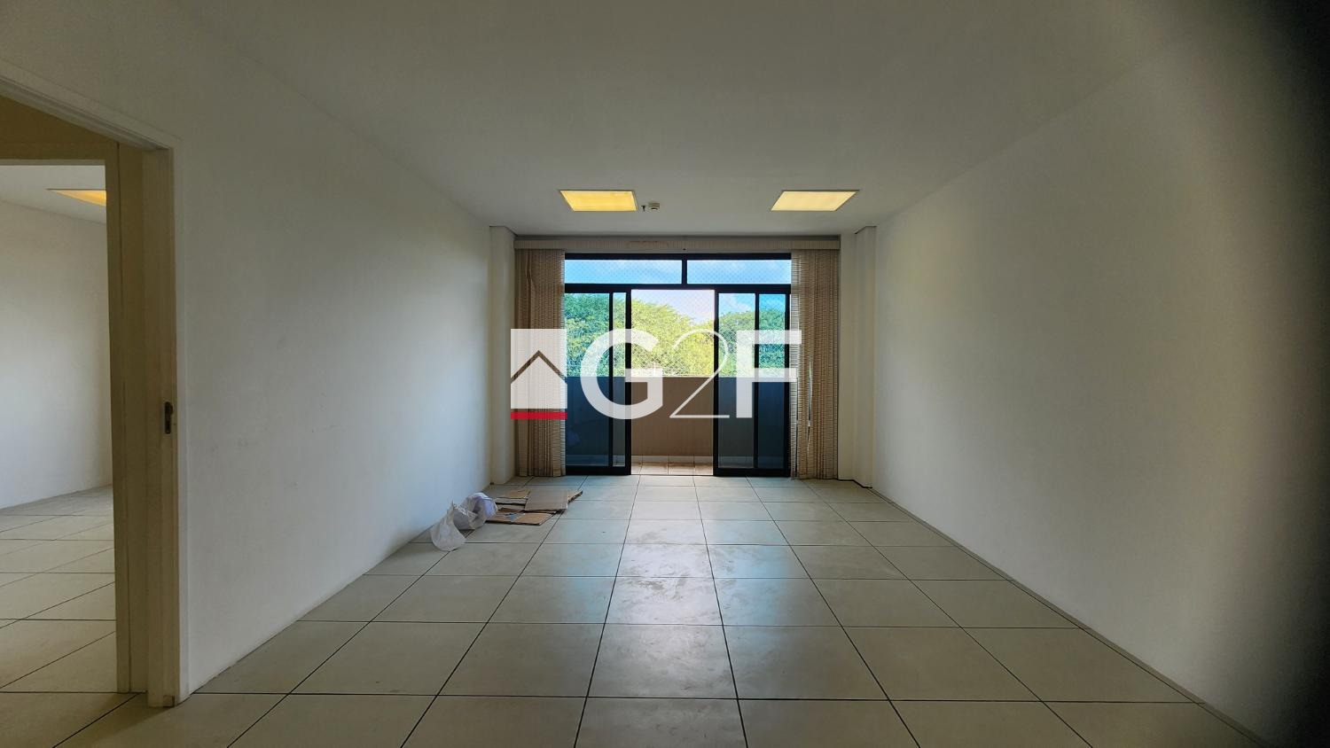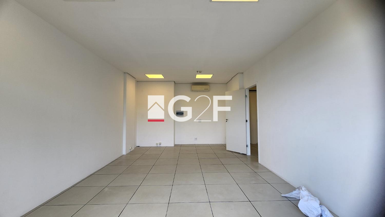 e banheiro. As 2 salas possuem sacadas, piso elevado, luminárias, forro de gesso, persianas e ar condicionado.