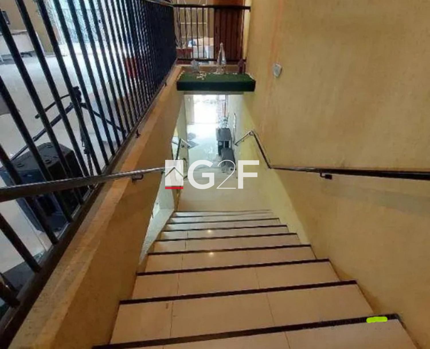 Parte inferior com dois banheiros com box Blindex, cozinha, escada para o piso superior super larga, edícula nos fundos que pode ser usada para escritório ou quarto. Um banheiro com box Blindex ao lado da edícula.