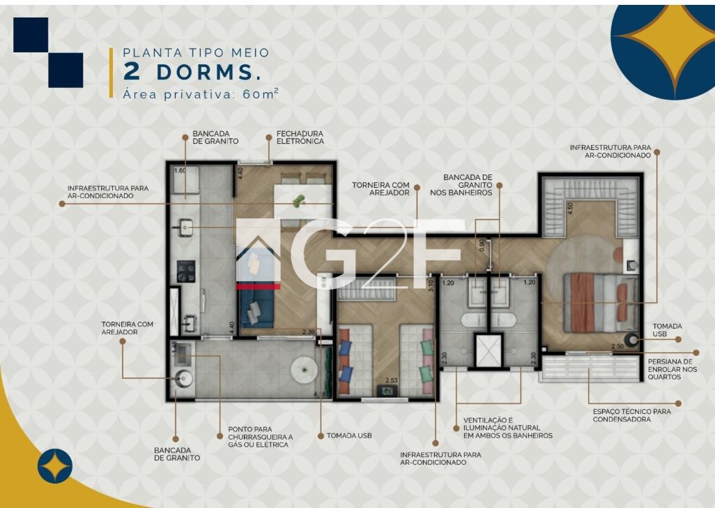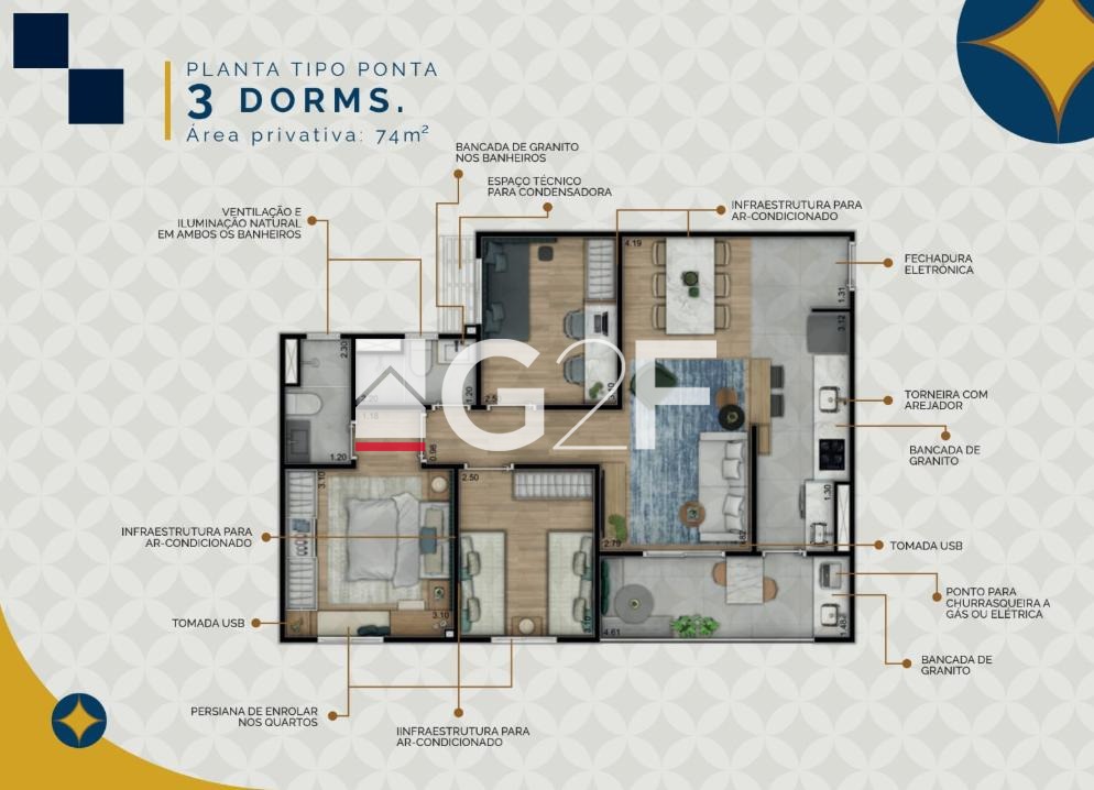 Os apartamentos possuem plantas modernas com 2 ou 3 dormitórios, incluindo opções com suíte, varanda gourmet e vagas de garagem, ideal para quem busca morar próximo a universidades, comércios e principais