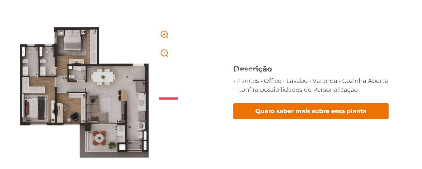 Com torre única e apenas 76 apartamentos, o empreendimento oferece exclusividade e privacidade aos moradores. Os apartamentos possuem ambientes integrados, varanda gourmet com churrasqueira e possibilidade de personalização de acabamentos através do programa de design da construtora.