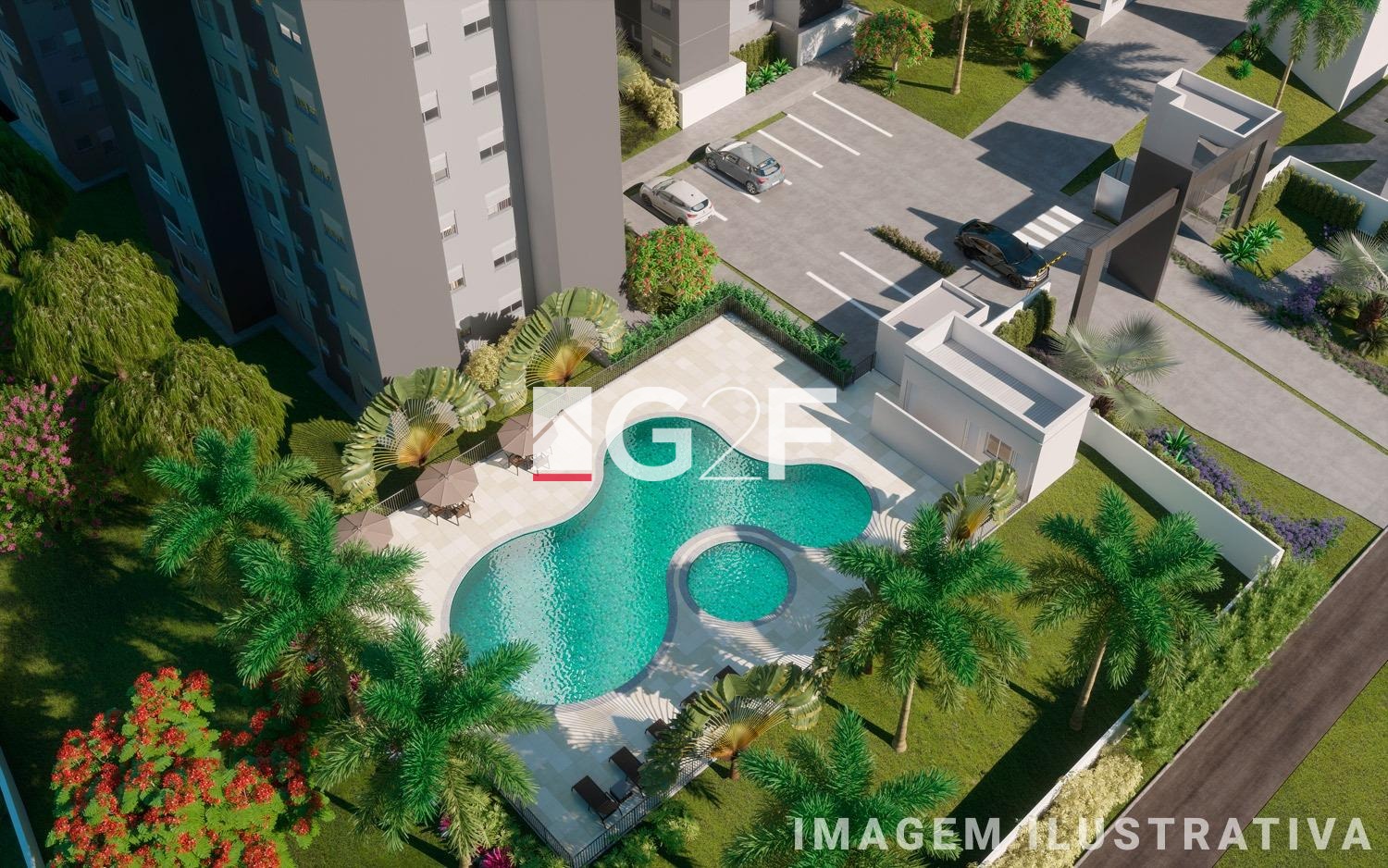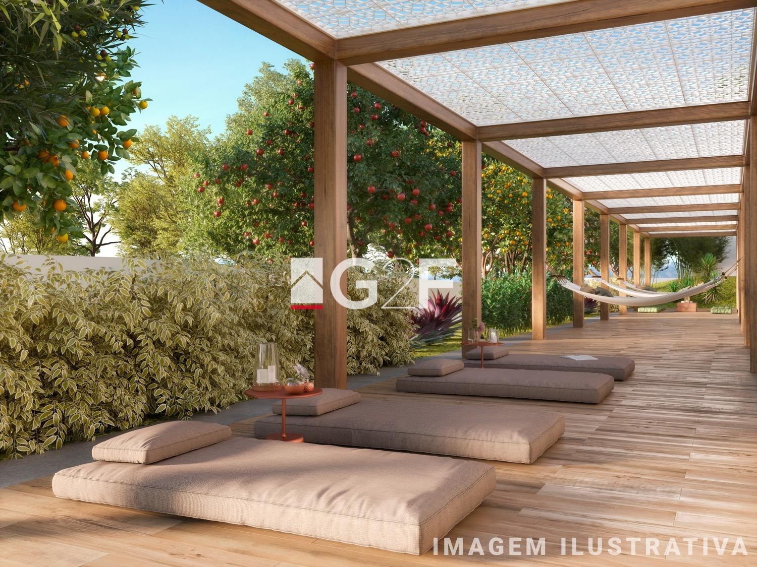 O condomínio possui elevador, área de lazer, salão de festas, playground, pet place, espaço gourmet, espaço zen, piscinas para adulto e infantil, quadra, pomar, bicicletário, fitness coberto e lavanderia.