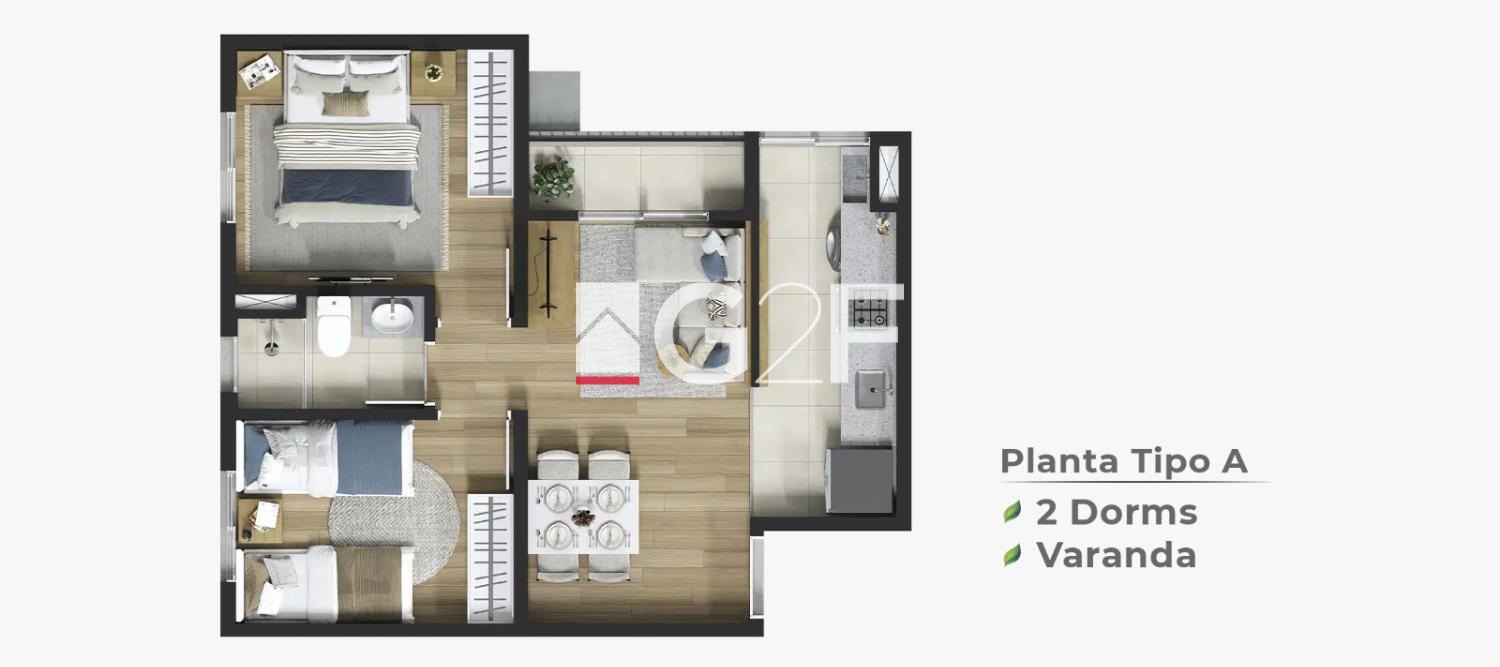 Os apartamentos possuem plantas compactas e funcionais, ideais para famílias pequenas ou para quem deseja sair do aluguel, com possibilidade de financiamento pelo programa Minha Casa Minha Vida.