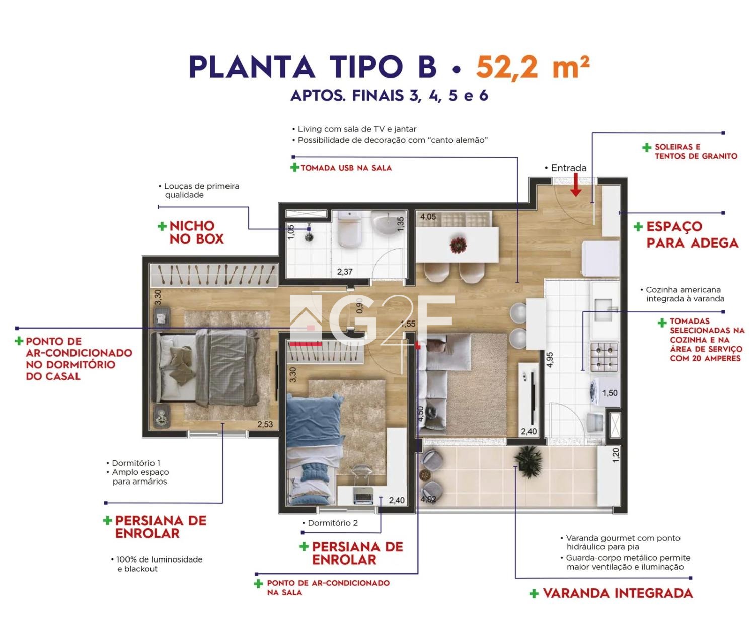 | Unidade | Dormitórios | Suítes | Banheiros | Vagas | Área Útil | Área Total | Terreno | Plantas |