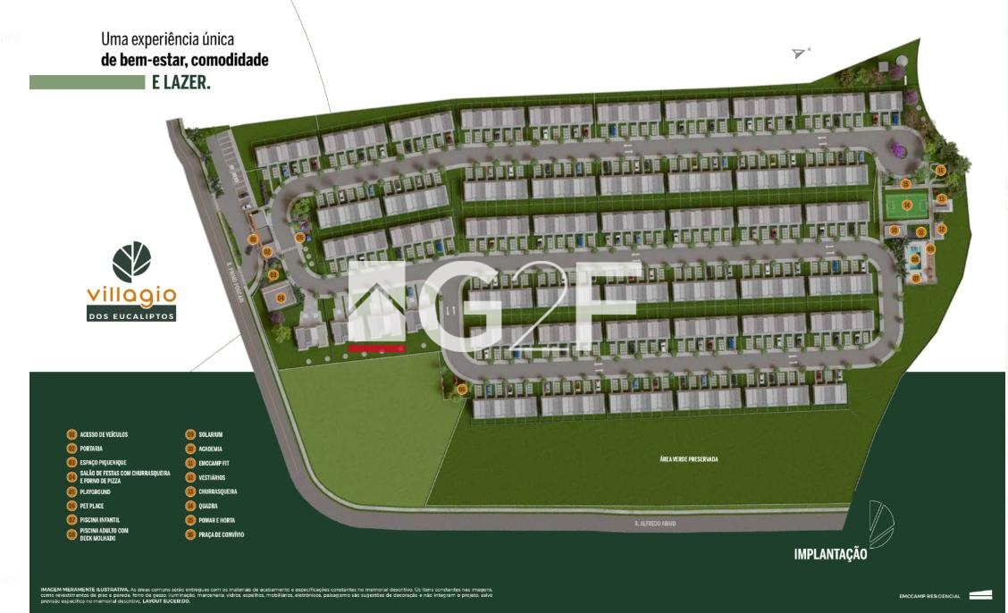 O Villagio dos Eucaliptos é um condomínio fechado de casas localizado no bairro Medeiros, uma das regiões que mais crescem em Jundiaí. O projeto foi planejado para oferecer qualidade de vida, segurança e contato com a natureza, com mais de 60 mil m² de área verde preservada ao redor do residencial.